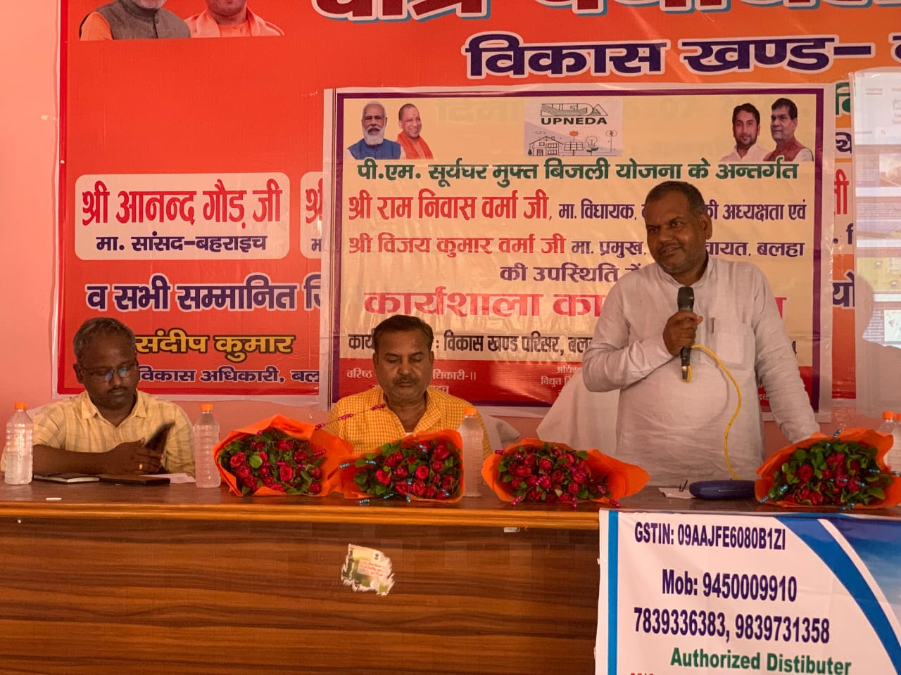 बहराइच (राष्ट्र की परम्परा)। उत्तर प्रदेश नवीन एवं नवीकरणीय ऊर्जा विकास अभिकरण के तत्वावधान में विकास खण्ड बलहा के सभागार में प्रधानमंत्री सूर्य घर बिजली योजना के अन्तर्गत आयोजित एक दिवसीय कार्यशाला को सम्बोधित करते हुए विधायक नानपारा राम निवास वर्मा ने कहा कि भविष्य की ऊर्जा सौर ऊर्जा है। विधायक ने कहा कि सौर ऊर्जा इको फ्रेंडली होने के साथ-साथ अन्य संसाधनों के मुकाबले इसकी उपलब्धता अनन्त है। ऊर्जा पैदा करने के लिये संसार में उपलब्ध दूसरे संसाधन एक-न-एक दिन समाप्त हो जायेंगे परन्तु सौर ऊर्जा के साथ ऐसा नहीं है।