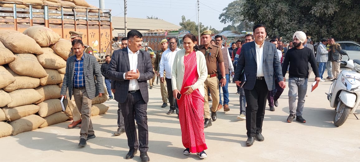 श्रीमती मीणा ने कृषि उत्पादन मण्डी समिति सलारपुर स्थित खाद्य एवं रसद विभाग के 03 (मण्डी प्रथम अ, प्रथम ब, मण्डी द्वितीय),एफसीआई के 02 व मण्डी समिति के 01 धान क्रय केन्द्र का निरीक्षण किया। प्रथम अ के निरीक्षण के दौरान ज्ञात हुआ कि अब तक 251 किसानों से 13770 कु.धान क्रय किया जा चुका है। निरीक्षण के समय ग्राम कमोलिया की कृषक रंजना देवी का धान तौला जा रहा था। जबकि प्रथम ब पर 206 किसानों से 11678.80 कु.खरीद की गई है। यहॉ पर ग्राम जौहरा के कृषक मोहर अली की उपज की तौल की जा रही थी। इसके अलावा द्वितीय पर बताया गया कि अब तक 186 किसानो से 11827.00 कु. धान क्रय किया जा चुका है, निरीक्षण के समय ग्राम कमोलिया के घनश्याम वर्मा का धान क्रय किया जा रहा था। इसके अलावा भारतीय खाद्य निगम के क्रय केन्द्र के निरीक्षण के दौरान बताया गया कि अब तक 207 किसानो से 11196 कु.धान क्रय का किया ज चुका है। यहॉ पर ग्राम विशुनपुर राहू के कृषक अयोध्या के उपज की खरीद की जा रही थी। जबकि मंडी समिति के केन्द्र पर बताया गया कि अब तक 52 किसानों से 3220.40 कु. धान कय किया जा चुका है, निरीक्षण के समय ग्राम चॉदपारा के मंगलराम के उपज की खरीद की जा रही थी। श्रीमती मीणा ने मौजूद कृषकों से धान खरीद के बारे में फीड बैक भी प्राप्त की। उल्लेखनीय है कि जनपद आते समय श्रीमती मीणा ने ढ़लैयाडीह,जरवल, कैसरगंज,अलाददापुर सहित अन्य केन्द्रों का निरीक्षण कर आवश्यक जानकारी प्राप्त की। निरीक्षण के दौरान श्रीमती मीणा ने निर्देश दिया कि धान क्रय केन्द्रों से 48 घण्टे के अन्दर सम्बद्ध मिलों को क्रय किये धान की डिलीवरी की व्यवस्था की जाए। श्रीमती मीणा ने धान की आवक को देखते हुए काटों की संख्या बढ़ाये जाने के भी निर्देश दिये। उन्होंने मण्डी में संचालित प्रत्येक धान क्रय केन्द्रों पर दो-दो पावर डस्टर तथा जिले के अन्य धान क्रय केन्द्रों पर एक-एक पावर डस्टर लगाने के साथ-साथ मिलों से भी चावल की लेवी सुनिश्चित की जाए। लो.नि.वि. निरीक्षण भवन में प्रमुख सचिव श्रीमती मीणा ने जिलाधिकारी डॉ. दिनेश चन्द्र,मुख्य विकास अधिकारी कविता मीना, अपर जिलाधिकारी मनोज सहित अन्य सम्बन्धित अधिकारियों के साथ धान खरीद की समीक्षा करते हुए जिले में की जा रही खरीद पर संतोष व्यक्त किया। जिलाधिकारी डॉ. दिनेश चन्द्र ने पुष्पगुच्छ तथा ओडीओपी अन्तर्गत गेहूॅ डण्ठल से निर्मित कलाकृति भेट कर प्रमुख सचिव का स्वागत किया। इस अवसर पर नगर मजिस्ट्रेट ज्योति राय,पुलिस क्षेत्राधिकारी नगर राजीव सिसौदिया, संभागीय खाद्य नियंत्रक देवीपाटन मण्डल सरजू प्रसाद,जिला खाद्य एवं विपणन अधिकारी संजीव सिंह,जिला पूर्ति अधिकारी अनन्त प्रताप सिंह,डीसी मनरेगा के.डी.गोस्वामी सहित धान क्रय एजेन्सियों के जिला प्रबन्धक व अन्य सम्बन्धित मौजूद र