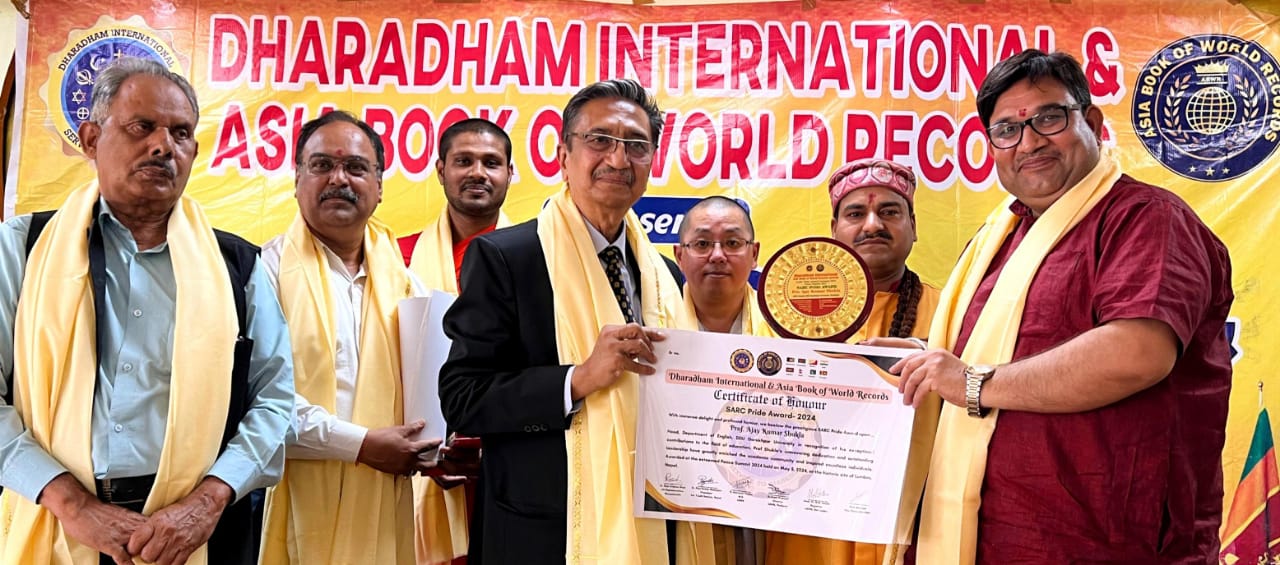 गोरखपुर (राष्ट्र की परम्परा)। दीन दयाल उपाध्याय गोरखपुर विश्वविद्यालय, गोरखपुर के अंग्रेज़ी विभाग के अध्यक्ष प्रो. अजय शुक्ल को नेपाल के लुम्बिनी में आयोजित एक समारोह सार्क प्राइड अवार्ड से नवाज़ा गया। यह सम्मान उन्हें अध्यक्ष के रूप में नवाचार करने, शिक्षा के क्षेत्र में अमूल्य योगदान के लिए धराधाम इंटरनेशनल एवं एशिया बुक ऑफ़ वर्ल्ड रिकॉर्ड्स के द्वारा आयोजित कार्यक्रम में विभिन्न सार्क देशों के प्रतिनिधियों की उपस्थिति में नेपाल के लुम्बिनी स्थित बौद्ध विश्वविद्यालय के कुलपति प्रो. सुबर्ण लाल बज्राचार्य एवं लुम्बिनी के मेयर के द्वारा प्रदान किया गया।