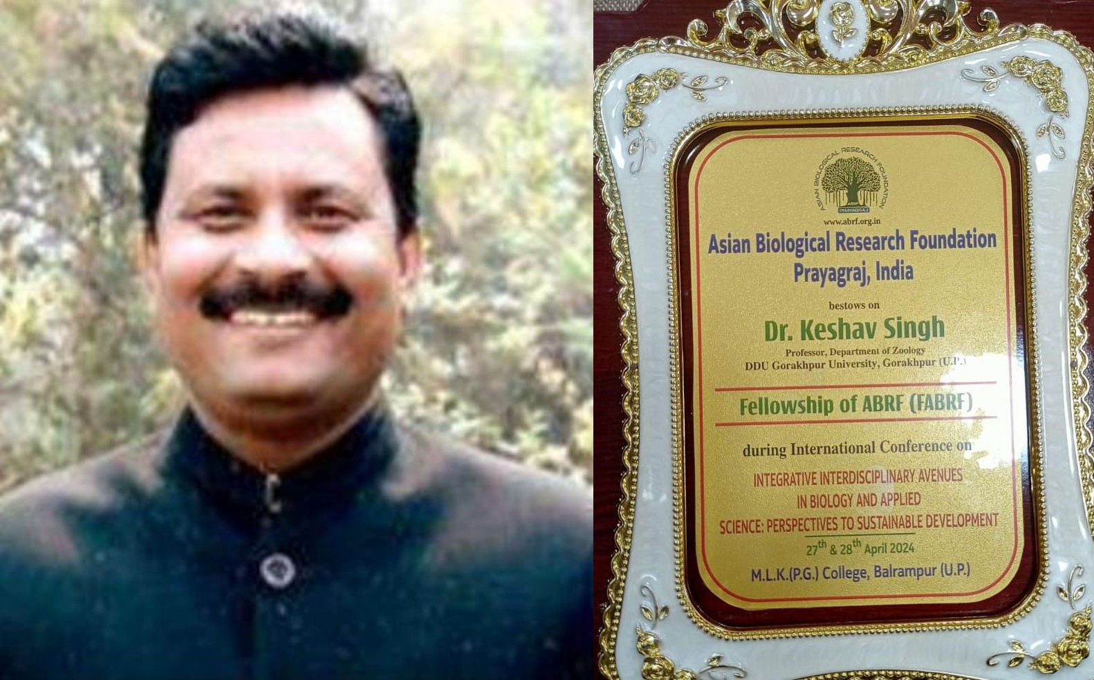 गोरखपुर (राष्ट्र की परम्परा)। दीनदयाल उपाध्याय, गोरखपुर विश्वविद्यालय, गोरखपुर के प्राणि विज्ञान विभाग के आचार्य प्रो. केशव सिंह को एमएलके पीजी कॉलेज, बलरामपुर द्वारा 27-28 अप्रैल, 2024 को “जीव विज्ञान और अनुप्रयुक्त विज्ञान में एकीकृत अंतःविषयक रास्ते: सतत विकास के परिप्रेक्ष्य” विषयक आयोजित अंतरराष्ट्रीय कांफ्रेंस में उत्कृष्ट शोध कार्य के लिए एबीआरएफ फैलोशिप से सम्मानित किया गया तथा प्रो. केशव सिंह द्वारा “वर्मीकंपोस्टिंग के माध्यम से अपशिष्ट प्रबंधन” पर समाजोपयोगी व्याख्यान भी दिया गया।