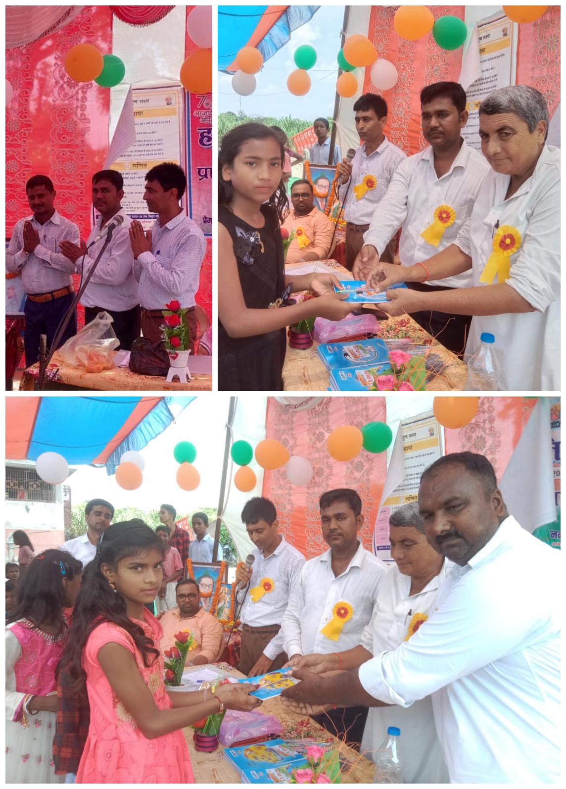 कितनी यातनाए सहे। हम सभी को उनसे प्रेरणा लेकर देश को आगे बढाना है। एआरपी संतोष शर्मा ने कहा कि बच्चे इस देश के भविष्य है। ग्रामीण अंचल मे इनकी प्रतिभाओ को मंच मिलना सराहनीय है।प्रधानाध्यापक पंकज कुमार गोंड ने कहा कि आजादी के इस अमृत काल मे विभाग ने निपुण भारत योजना के तहत कक्षा एक से तीन तक के बच्चो के लिए लक्ष्य निर्धारित किया है जिसे पाने के लिए हम सभी कटिबद्ध है। कार्यक्रम को सत्येन्द्र कुशवाहा एसएमसी अध्यक्ष नन्हे शाह ने भी सम्बोधित किया।