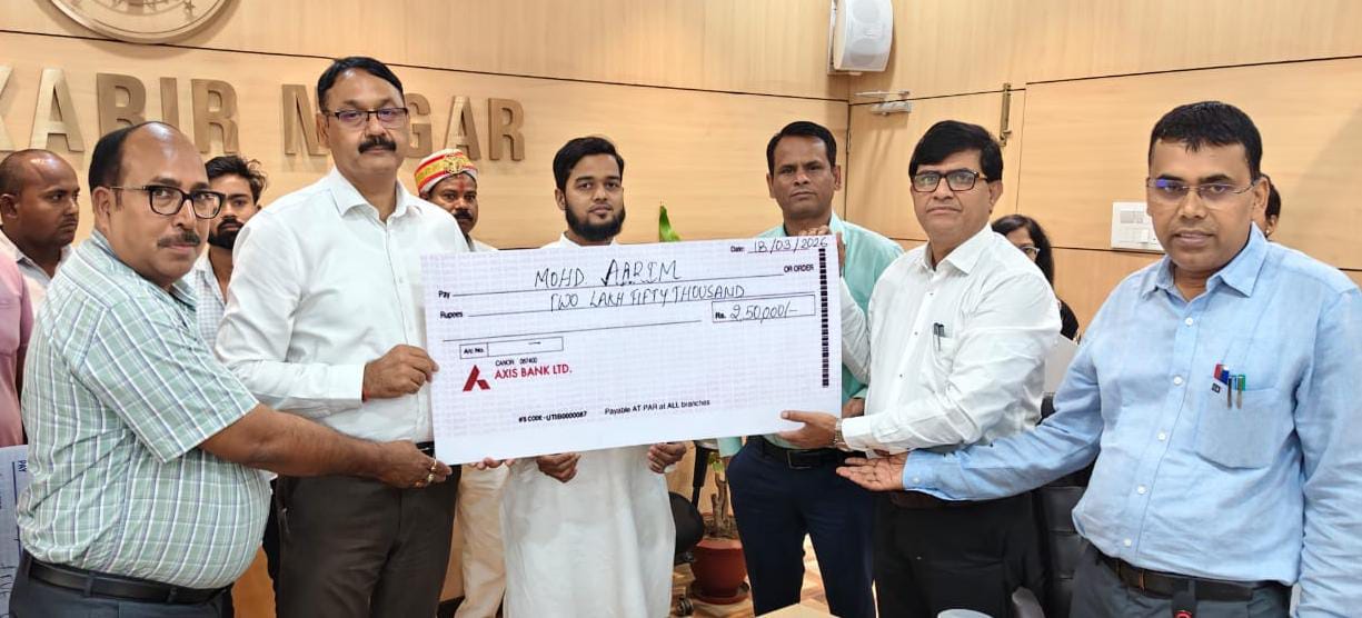 संत कबीर नगर (राष्ट्र की परम्परा)। जिलाधिकारी आलोक कुमार की अध्यक्षता में मुख्यमंत्री युवा उद्यमी विकास अभियान योजना के तहत कलेक्ट्रेट के एनआईसी सभागार में वृहद ऋण वितरण कैम्प आयोजित किया गया। शिविर में 18 लाभार्थियों को 75.50 लाख रुपये के डेमो चेक वितरित किए गए, जबकि कुल 55 लाभार्थियों को 192.50 लाख रुपये का ऋण स्वीकृत एवं वितरित किया गया।