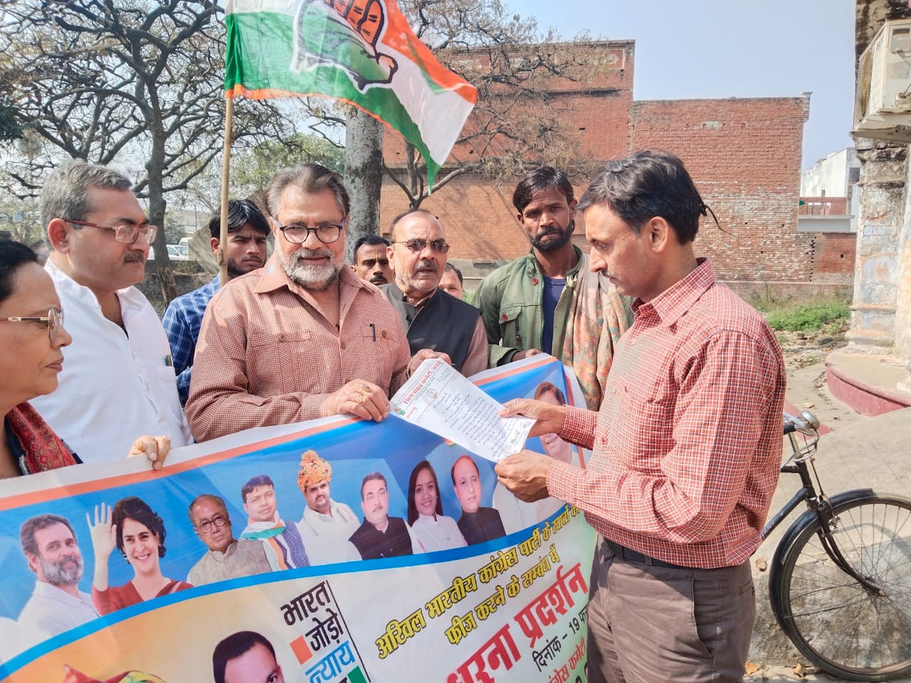 पूर्व निर्धारित कार्यक्रम अनुसार आज जिला कांग्रेस कमेटी के अध्यक्ष ओमकार सिंह के नेतृत्व में कांग्रेसजनों ने कांग्रेस व युवा कांग्रेस के खाते फ्रीज करने के विरोध में कांग्रेस कार्यालय से लेकर आयकर विभाग कार्यालय इंदिरा चौक तक जुलूस निकाला एवं कार्यालय पर धरना प्रदर्शन कर, आयकर अधिकारी शुक्ला को ज्ञापन दिया। धरना स्थल पर उपस्थित कार्यकर्ताओं को संबोधित करते हुए जिला अध्यक्ष ओमकार सिंह ने कहा की सत्ता पक्ष की एक ओछी राजनीति का परिचय देते हुए उन्होंने चुनाव के अवसर पर जिस तरीके से कांग्रेस के और युवा कांग्रेस के खातों को आयकर विभाग के द्वारा फ्रीज करवाया है, यह लोकतंत्र पर सीधा-सीधा कुठाराघात है। जिसको कांग्रेस के लोग सहन करने की स्थिति में नहीं है और इस घृणित कार्य के विरोध में कांग्रेस जन सड़क पर लड़ने के लिए तैयार है। अगर जल्द ही कांग्रेस के खातों को रिलीज नहीं किया गया तो कांग्रेस जन और भी बड़े आंदोलन के लिए बाध्य होंगे। जिला कांग्रेस कमेटी के प्रवक्ता प्रदीप सिंह एडवोकेट ने इस कार्य की निंदा करते हुए कहा कि, यह एक तरीके से अघोषित इमरजेंसी है। जिला महिला कांग्रेस की अध्यक्ष सुनीता सिंह ने कहा कि हम ऐसी पार्टी के सदस्य नहीं है की जो इन कार्यों से डर कर बैठ जाएंगे हम ईंट का जवाब पत्थर से देना जानते हैं, और हर आंदोलन के लिए तैयार हैं। धरना स्थल पर जिला कांग्रेस कमेटी के उपाध्यक्ष गौरव सिंह राठौर ,जिला कांग्रेस के महासचिव इगलास हुसैन ने भी इस घटना की निंदा करते हुए सरकार की आलोचना की। कार्यक्रम का संचालन जिला कांग्रेस कमेटी के उपाध्यक्ष सुरेश राठौर ने किया। इस अवसर पर रमेश कुमार ,पृथ्वी पाल, रविंद्र सिंह विरासत अली, उस्मान अली तैयब हुसैन, मुश्ताक अहमद, तस्लीम अली आदि कार्यकर्ता पदाधिकारी उपस्थित रहे।