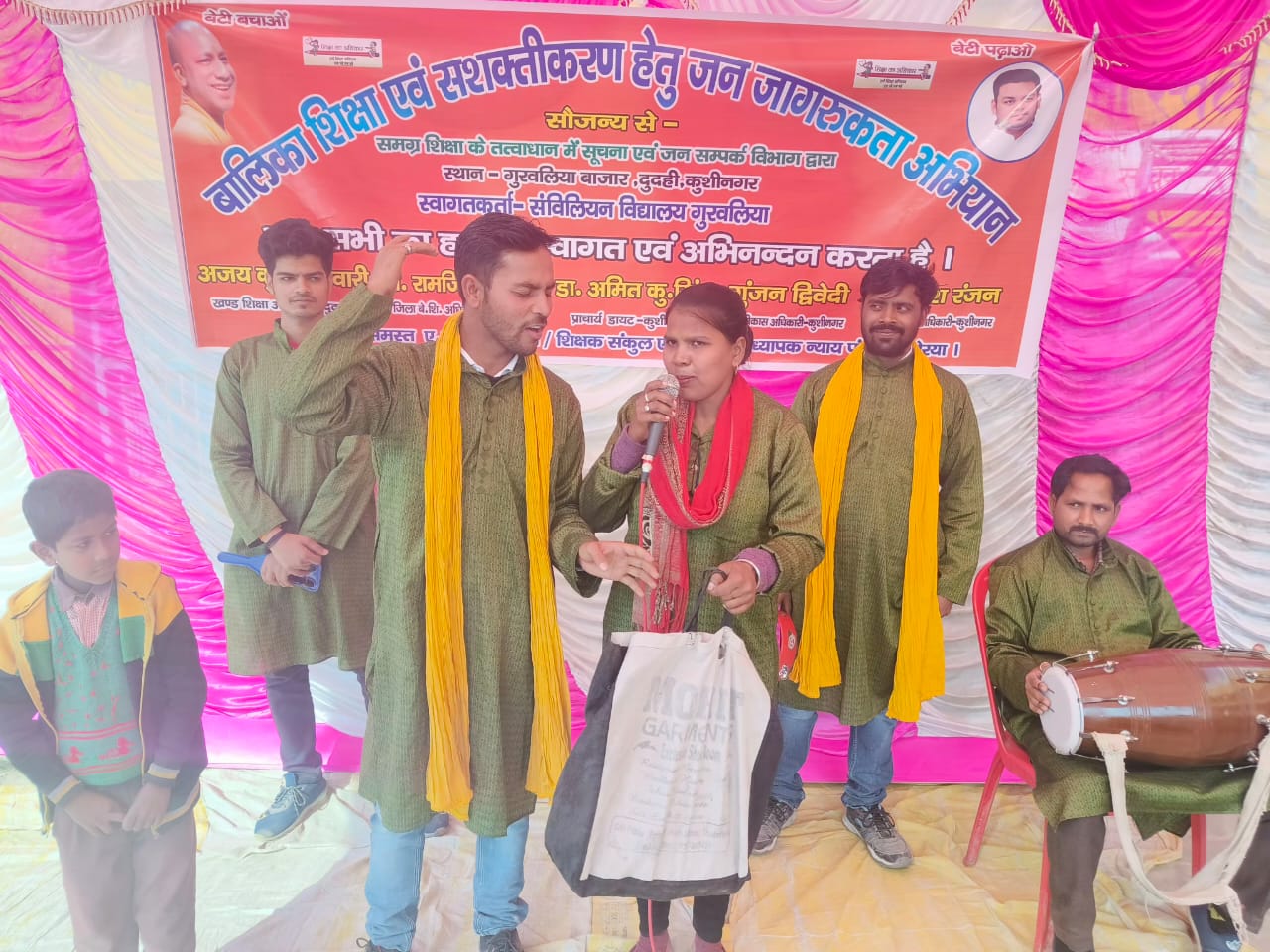कुशीनगर(राष्ट्र की परम्परा) गुरुवार को दुदही विकास खण्ड के न्याय पंचायत कोरेया के कंपोजिट विद्यालय, गुरवलिया में समग्र शिक्षा अभियान व सूचना एवं जनसंपर्क विभाग के द्वारा स्पेशल प्रोजेक्ट फॉर इक्विटी के अन्तर्गत, बालिका शिक्षा एवं सशक्तिकरण जन जागरूकता अभियान तथा बेसिक शिक्षा विभाग के निपुण भारत अभियान के तत्वावधान में, जन जागरुकता हेतु नुक्कड़ नाटक प्रस्तुत किया गया। नाटक में शिक्षा को बढ़ावा देने वाली सरकार की योजनाओं पर विशेष ध्यान दिया गया।