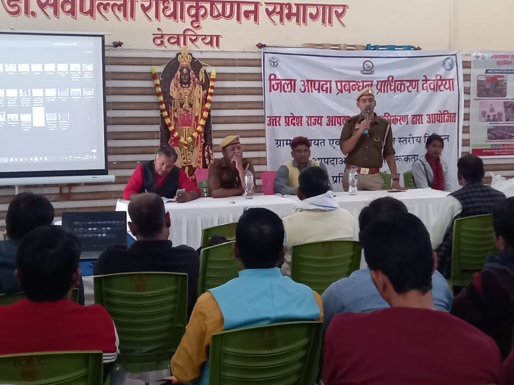 देवरिया(राष्ट्र की परम्परा)। भारत सरकार एवं राज्य सरकार द्वारा अधिसूचित विभिन्न आपदाओं से बचाव हेतु जन जागरूक कार्यक्रम के तहत ब्लॉक संसाधन केंद्र देवरिया में प्रशिक्षण कार्यक्रम का आयोजन किया गयाl जनपद में आपदा से बचाव एवं जागरूकता हेतु जिलाधिकारी अखंड प्रताप सिंह के कुशल मार्गदर्शन में जनपद के विकासखंड बैतालपुर, बनकटा, भाटपार रानी, बरहज, गौरी बाजार, भलुअनी, देवरिया सदर व भागलपुर के समस्त प्राथमिक विद्यालयों के एक-एक शिक्षक को मास्टर ट्रेनर के रूप में प्रशिक्षित किया गया।