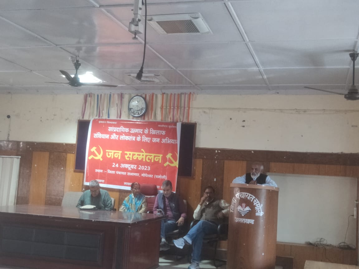 सांप्रदायिक उन्माद के खिलाफ संविधान और लोकतंत्र के लिए तीन वामपंथी पार्टियों के संयुक्त जन अभियान” के तहत गोपेश्वर में जन सम्मेलन सम्पन्न हुआ। जन सम्मेलन में तीन कम्युनिस्ट पार्टियों – भारत की कम्युनिस्ट पार्टी, भारत की कम्युनिस्ट पार्टी (मार्क्सवादी), भारत की कम्युनिस्ट पार्टी (मार्क्सवादी – लेनिनवादी) के कार्यकर्ताओं सहित अनेक संगठनों के लोग मौजूद रहे।जन सम्मेलन में चिपको, छीनो- झपटो जैसे आंदोलनों के नेतृत्वकर्ता और कम्युनिस्ट नेता कॉमरेड धन सिंह राणा के निधन पर उन्हें दो मिनट का मौन रख कर श्रद्धांजलि दी गयी।