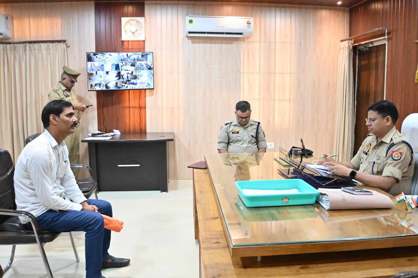 आजमगढ़ (राष्ट्र की परम्परा)। शुक्रवार को पुलिस लाईन स्थित पुलिस कार्यालय में पुलिस अधीक्षक आजमगढ़ हेमराज मीना व अपर पुलिस अधीक्षक यातायात विवेक त्रिपाठी द्वारा, जनसुनवाई की गयी। जनसुनवाई में प्राप्त प्रार्थना पत्रों के निस्तारण हेतु संबंधित अधिकारियों को मौके पर जाकर शिकायतों की तत्काल, निष्पक्ष व न्यायोचित जांच कर विधिक निस्तारण सुनिश्चित करने हेतु निर्देशित किया गया।