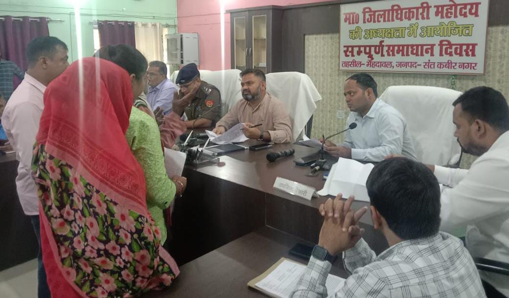 संत कबीर नगर (राष्ट्र की परम्परा)। जिलाधिकारी महेन्द्र सिंह तंवर ने मेंहदावल तहसील में आयोजित सम्पूर्ण समाधान दिवस की अध्यक्षता करते हुए प्राप्त शिकायतों को निर्धारित समय सीमा में गुणवत्तापूर्व निस्तारण के लिए राजस्व विभाग सहित अन्य सम्बंधित विभागीय अधिकारियों को निर्देशित किया है। उन्होंने कहा कि अधिकारीगण सम्बंधित कर्मचारियों के साथ मौके पर जा कर शिकायतकर्ता का पक्ष सुनते हुए उसका निस्तारण करवाना सुनिश्चित करें। सम्पूर्ण समाधान दिवस में उपस्थित फरियादियों की समस्याओं को सुनते हुए जिलाधिकारी ने कहा कि फरियादियों की शिकायतों का त्वरित निस्तारण और शिकायतकर्ता की संतुष्टि ही सम्पूर्ण समाधान दिवस का मुख्य लक्ष्य है, इसमें किसी भी प्रकार लापरवाही पाये जाने अथवा सम्बंधित अधिकारी/कर्मचारी द्वारा ससमय संज्ञान न लेने को गम्भीरता से लेते हुए जिम्मेदार अधिकारी/कर्मचारी के विरूद्ध सख्त कार्यवाही की जायेगी।