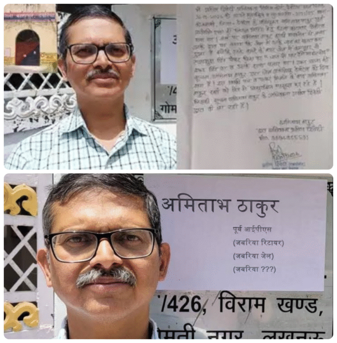 देवरिया (राष्ट्र की परम्परा डेस्क) जेल में बंद पूर्व आईपीएस अधिकारी अमिताभ ठाकुर को जान से मारने की धमकी मिलने का गंभीर मामला सामने आया है। प्लाट आवंटन में धोखाधड़ी के आरोप में निरुद्ध अमिताभ ठाकुर की बैरक के सामने एक धमकी भरा पत्र मिलने के बाद जेल प्रशासन और परिजनों में हड़कंप मच गया है। यह पत्र कंप्यूटर से टाइप किया हुआ बताया जा रहा है, जिसे उनकी बैरक के सामने एक पत्थर के नीचे दबाकर रखा गया था। पत्र में न केवल जान से मारने की धमकी दी गई है, बल्कि आपत्तिजनक और अश्लील भाषा का भी प्रयोग किया गया है।