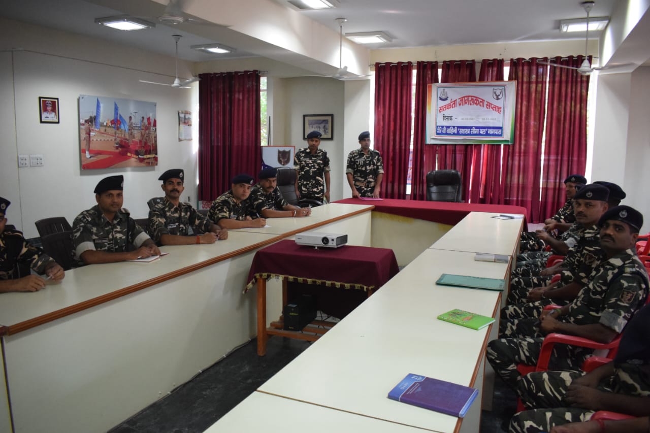 कार्यवाहक कमान्डेंट 59वीं वाहिनी ने बताया कि हम इस वर्ष 30 अक्टूबर से 05 नवम्बर तक सतर्कता जागरूकता सप्ताह के रूप में मना रहे हैं जिसकी थीम हैं भ्रष्टाचार का विरोध करे राष्ट्र के प्रति समर्पित रहे अर्थात देश को विकसित बनाने के लिए हमें भ्रष्टाचार से मुक्त होना बहुत ही जरुरी हैं , इसके लिए हमें अपने कर्तव्यों के प्रति सजग एवं ईमानदार होना बहुत जरुरी हैं।