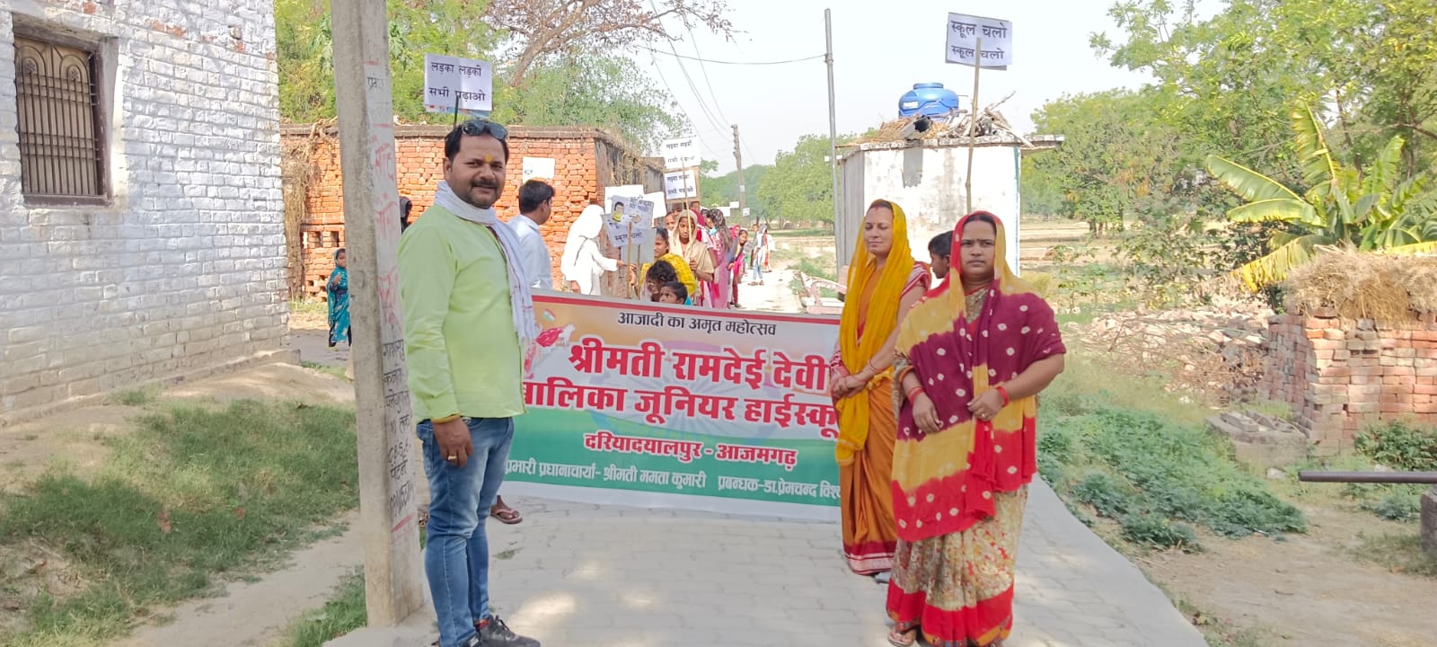 मोहम्मदपुरर विकासखंड के राम देई देवी देवी बालिका जूनियर स्कूल दयालपुर से, स्कुल चलो अभियान रैली सुबह 8:00 बजे विद्यालय परिसर से निकाली गयी जो सर्वप्रथम मिर्जापुर नौका पुरवा दरियापुर समेत कई गांवों का भ्रमण किया। रैली में खंड शिक्षा अधिकारी मुहम्मदपुर राकेश कुमार भी मौजुद रहे। प्रभारी प्रधानाध्यापक ममता कुमारी,गुंजन सिंह ने हरी झंडी दिखा कर रवाना किया। इस दौरान बहुत से ग्रामवासी उपस्थित थे। इस अवसर पर सभी लोगो ने ग्रामवासी से अपील किया की अब सरकारी स्कूल में शिक्षा का स्तर बहुत अच्छा हो गया है, इस लिए आप लोग अधिक से अधिक संख्या में बच्चो का प्रवेश स्कूल में कराएं। इस मौके पर ,अरविंद प्रजापति, लकी श्रीवास्तव, सोनल चौहान, अर्चना विश्वकर्मा, अन्य सभी पुरवे में भ्रमण कराया गया।