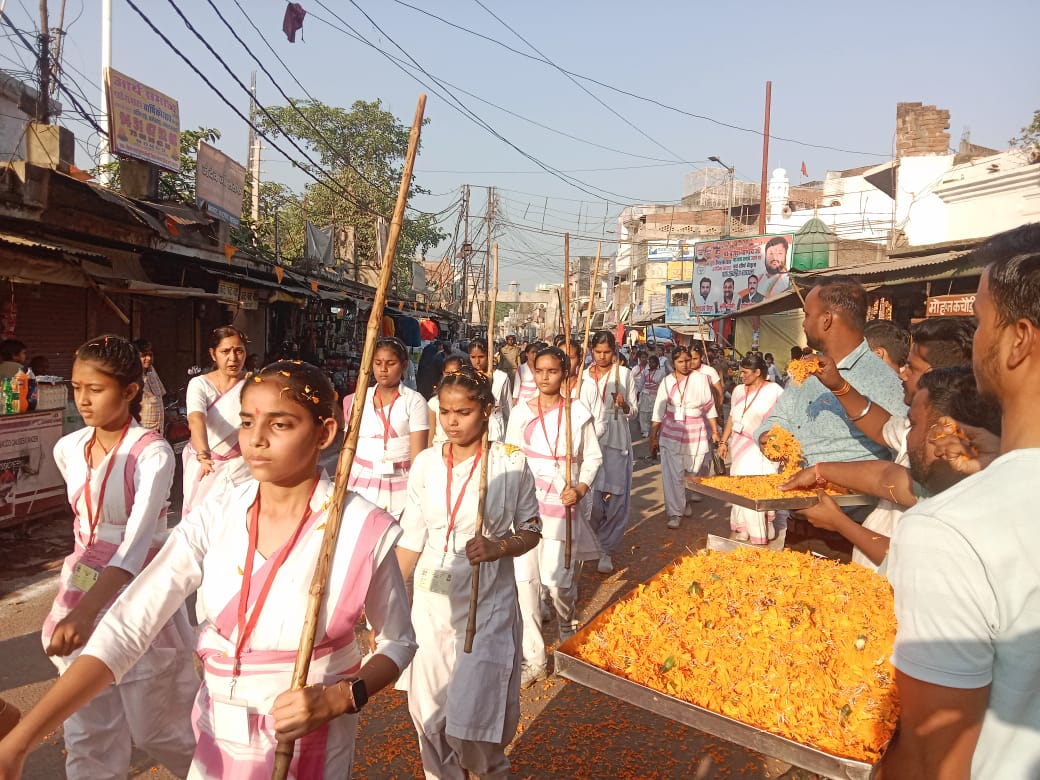 पुष्प वर्षा कर नगरवासियों ने किया स्वागत