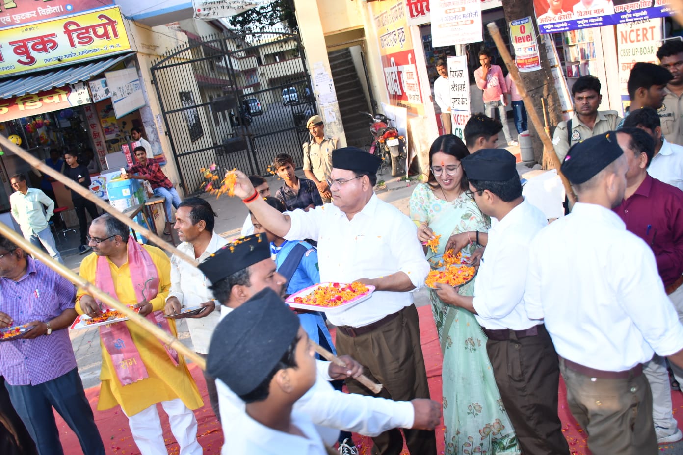 पथ संचलन के दौरान नगर जगह-जगह पर स्वयं सेवकों के ऊपर पुष्प वर्षा कर नगरवासियों ने अभिनंदन किया किया।