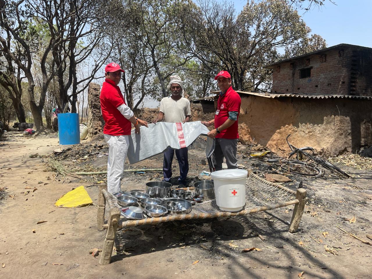 रेड क्रास सोसाइटी द्वारा तारकेश्वर प्रसाद को रहने के लिए त्रिपाल, बर्तन,खाने की सामग्री ताकि उनके परिवार का तत्काल भरण पोषण हो सकेl इस दौरान में डॉ०दीपक मिश्र और अभिनीत उपाध्याय आदि लोग उपस्थित रहे ।