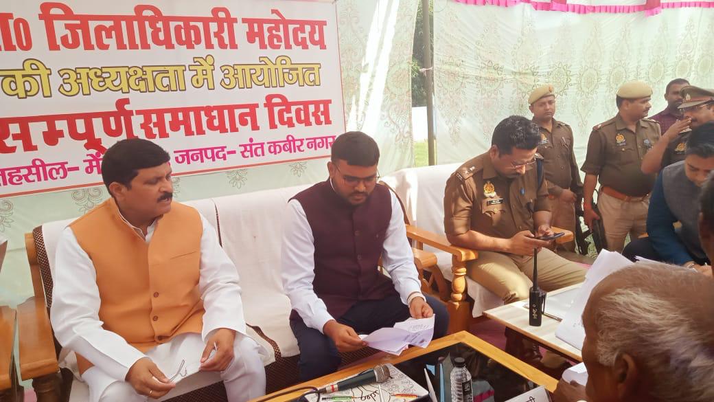 संत कबीर नगर (राष्ट्र की परम्परा)। जिले के मेंहदावल तहसील के नव गठित नगर पंचायत धर्मसिंहवा बाजार के जूनियर हाईस्कूल में मेंहदावल विधायक अनिल कुमार त्रिपाठी, जिलाधिकारी प्रेम रंजन सिंह, पुलिस अधीक्षक सोनम कुमार व मुख्य विकास अधिकारी अतुल मिश्र की उपस्थिति मे सम्पूर्ण समाधान दिवस संपन्न हुआ।
