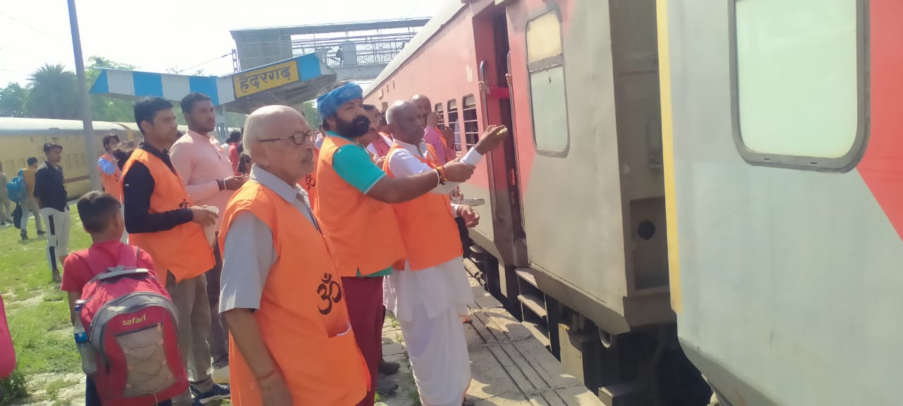 हैदरगढ़/बाराबंकी(राष्ट्र की परम्परा)। जिले के हैदरगढ़ तहसील अंतर्गत हैदरगढ़ रेलवे स्टेशन पर अमित अवस्थी संयोजक धर्मजागरण संस्थान, बाराबंकीधाम के नेतृत्व में सुबह आने वाली फरक्का व मेमो ट्रेनों में यात्रा कर रहे यात्रियों को मिष्ठान सहित जल वितरित किया। कार्यक्रम की मुख्य अतिथि प्रसिद्ध समाजसेवी संगीता चतुर्वेदी पत्नी स्व. अजय चतुर्वेदी संघ जिला कार्यवाहक बाराबंकी रहीं।