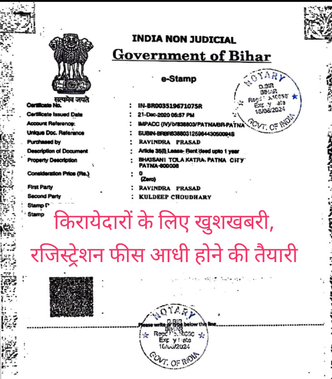 बिहार में रेंट एग्रीमेंट होगा सस्ता, किरायेदारों को बड़ी राहत, रजिस्ट्रेशन फीस में 50% तक कटौती की तैयारी