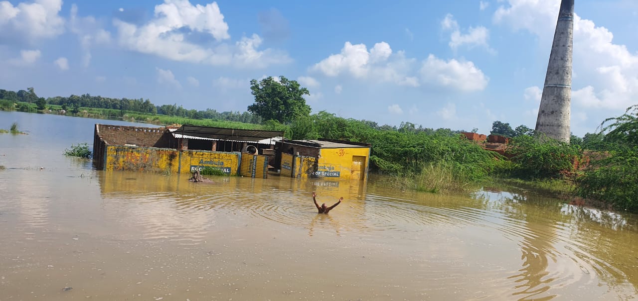 उतरौला/बलरामपुर (राष्ट्र की परम्परा)l बाढ़ की जद में आये सैकडों गांव के बाशिंदों को दुश्वारियों का सामना करना पड़ रहा है।कई गांव के लोग अभी भी छतों पर रहकर गुजारा कर रहे हैं।हैंड पंपो के पानी में डूब जाने से शुध्द पेयजल की किल्लत बढ़ गई है। बाढ़ की त्रासदी ने महुवाधनी के निर्भाडीह मजरे के तीन कच्चे आशियानों को धराशाई कर दिया है। किसानों के सैकड़ो हेक्टेयर धान की फसल बरबाद हो गई है। बौड़िहार, रसूलाबाद, टेढ़वा तप्पा बांक, गोनकट, हसनगढ़,भरवलिया, डुढ़ुहिया,मस्जिदिया, कंचनपुर, गोवर्धनपुर, परसौना, चिचुहड़ी सहागियां, नंदौरी, भरवलिया, हासिम पारा, छितरपारा, पाला पाली, मटयरिया कर्मा, मिलौली बाघाजोत, मोहनजोत, गुरुदयाल डीह, अल्लीपुर बुजुर्ग, बभन पुरवा, महुआ धनी, बरायल, कटरा, बारम, फत्तेपुर, रुस्तम नगर, कोहिनिया, उपरौहौला, कर्मा, पिपरा एकडंगा, रसूलपुर, राजापुर, पनवापुर,रेहरा माफी,चीती,बनकटवा,गरीब नगर, समेत सैकड़ा भर गांव बाढ़ की जद में आ गए हैं। नदी से बाहर निकले पानी ने रास्तों को जलमग्न कर दिया है। जबकि खेतों में खड़ी किसानों की सैकड़ों एकड़ फसलें पूरी तरह बर्बाद हो गई हैं। राप्ती नदी के पानी ने तबाही मचा रखा है। नदी के किनारों से बाहर निकला पानी किसानों की खड़ी फसलों को बर्बाद कर रहा है।हालत यह है कि सोमवार को मनकापुर मार्ग पर लालगंज से इमलिया बनघुसरा तक सड़कों पर अभी भी एक फिट पानी बह रहा है पानी के तेज बहाव के चलते छोटे वाहनों का आवागमन पूरी तरह बाधित हो गई है।इसी तरह उतरौला से पचपेड़वा मार्ग पर सड़क पर दो से तीन फिट पानी बह रहा है। आठ दिन बीतने के बाद भी बाढ़ का पानी गांव, रास्तों व खेतों में कहर बरपा रहा है। क्षेत्र के सैकड़ों गांव बाढ़ के पानी से घिरे हुए हैं। गांव से शहर आने वाले रास्ते जलमग्न हैं।कहीं कहीं पर लगे इंडिया मार्का हैंड पंप पानी में डूबे हुए हैं जिसके चलते लोगों के सामने पीने के लिए साफ पानी की समस्या उत्पन्न हो गई है। जानवरों के चारे के लिए बड़ा संकट खड़ा हो गया है। खेतों में खड़ी धान, सब्जियां, दलहन, गन्ना, की फसलें पूरी तरह बर्बाद हो चुकी है। सूखे की मार झेल रहे किसानों को अब बाढ़ के पानी ने पूरी तरह से बर्बाद कर दिया है।
