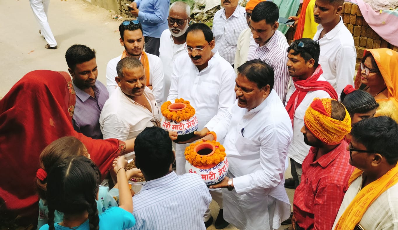सलेमपुर/देवरिया(राष्ट्र की परम्परा) भाजपा मण्डल सलेमपुर द्वारा मेरी माटी मेरा देश कार्यक्रम का आयोजन कस्बा सलेमपुर में किया गया।सांसद रविन्दर कुशवाहा ने घर-घर से मिट्टी एवम अक्षत एकत्रित कर कार्यक्रम का उद्घाटन किया।कार्यक्रम में मिट्टी को नमन एवम वीरों को वंदन का नारा लगाते हुए घर- घर से अक्षत और मिट्टी एकत्रित की गई।
