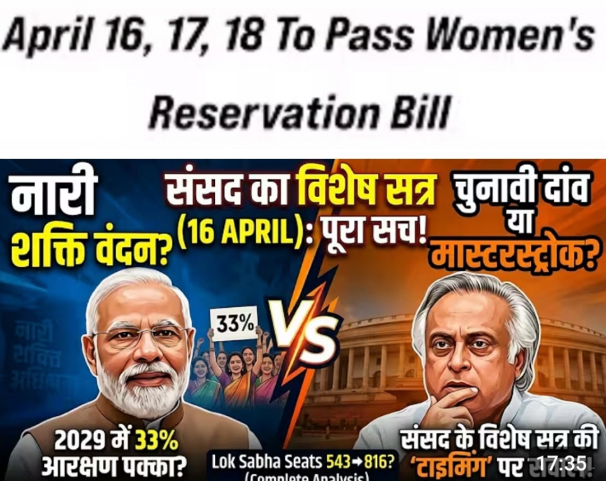 इसी के समानांतर, देश की राजनीति में भी महिलाओं की भागीदारी बढ़ाने की दिशा में ऐतिहासिक कदम उठाया जा रहा है। केंद्र सरकार ने ‘नारी शक्ति वंदन अधिनियम’ को लागू करने के लिए 16, 17 और 18 अप्रैल 2026 को संसद का विशेष सत्र बुलाया है। यह अधिनियम 2023 में संविधान के 106वें संशोधन के रूप में पारित हुआ था, जो लोकसभा और राज्य विधानसभाओं में महिलाओं के लिए 33 प्रतिशत आरक्षण सुनिश्चित करता है।