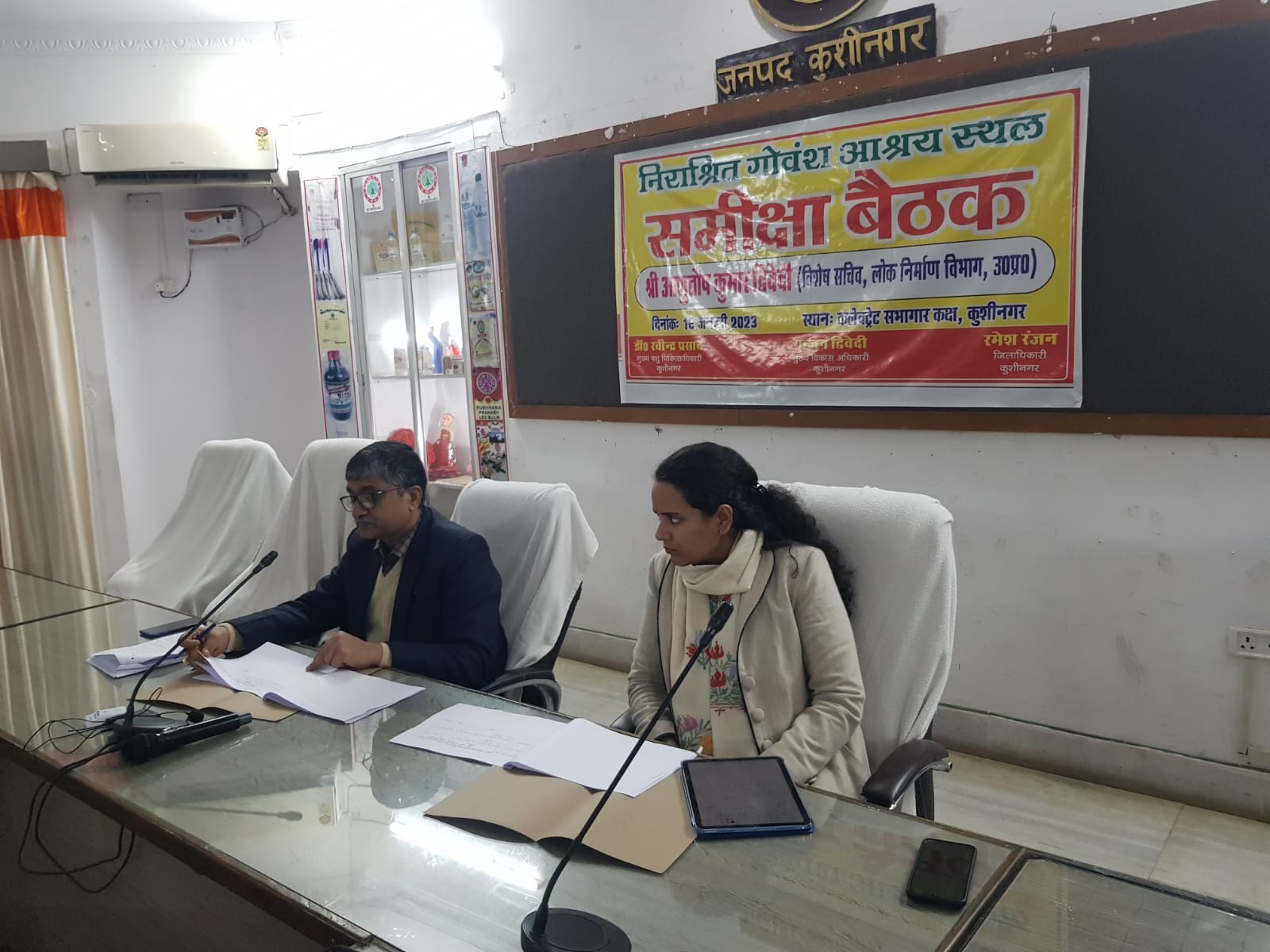 विशेष सचिव द्वारा बैठक में बताया गया कि प्रदेश सरकार द्वारा इस बात पर जोर दिया जा रहा है, कि मार्च 2023 तक जनपद में एक भी निराश्रित गो वंश न रहे। इसके लिये उन्होंने सभी सम्बंधित को अभियान चलाकर कार्य करने, अपनी क्षमता बढ़ाने पर जोर दिया । उन्होंने कहा कि सभी सदस्यों का ये प्रयास होना चाहिये कि, निराश्रित गो वंश पकड़े जाने के बाद लोगों की सुपुर्दगी में दे दी जाय, अथवा गोवंश आश्रय स्थल में रखा जाय। निराश्रित गोवंशों के सम्बन्ध में समय समय पर सरकार द्वारा जारी शासनादेशों की प्रति सभी को अपने पास रखने पर जोर दिया, ताकि किसी भी स्थिति से आसानी से निपटा जा सके। उन्होंने सभी सम्बंधित को निर्देशित करते हुए कहा कि भरण-पोषण के सम्बन्ध में मुख्य विकास अधिकारी की, अध्यक्षता में साप्ताहिक व जिलाधिकारी की अध्यक्षता में पाक्षिक बैठक अवश्य होनी चाहिये, तथा उक्त बैठकों के सम्बन्ध में मुख्यालय को भी सूचित किया जाय। उन्होंने आज गोवंश आश्रय स्थलों के निरीक्षण का जिक्र करते हुए कहा कि हाटा व कप्तानगंज की व्यवस्थाएं लगभग ठीक हैं, जबकि रामकोला की स्थिति ठीक नही है। इस सम्बंध में अपर जिलाधिकारी द्वारा रामकोला ईओ से जानकारी लेने के पश्चात भ्रमण कर कमियों को दूर करने की बात कही गई। इसके अलावे बैठक में ये भी निर्देशित किया गया कि स्थायी/अस्थायी निराश्रित गोवंश आश्रय स्थलों के सभी निर्माण कार्यों को फरवरी माह तक अवश्य पूर्ण लिए जाएं।