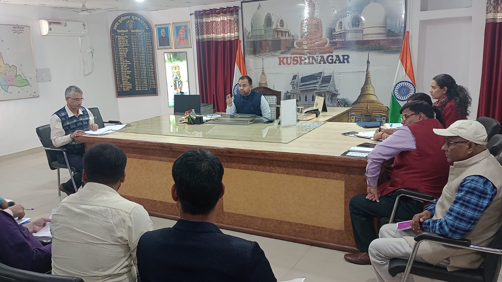 कुशीनगर(राष्ट्र की परम्परा) जिलाधिकारी रमेश रंजन की अध्यक्षता में जनपद कुशीनगर में संचालित/ क्रियान्वित, पर्यटन विकास योजनाओं की प्रगति की समीक्षा बैठक जिलाधिकारी कार्यालय कक्ष में संपन्न हुई।