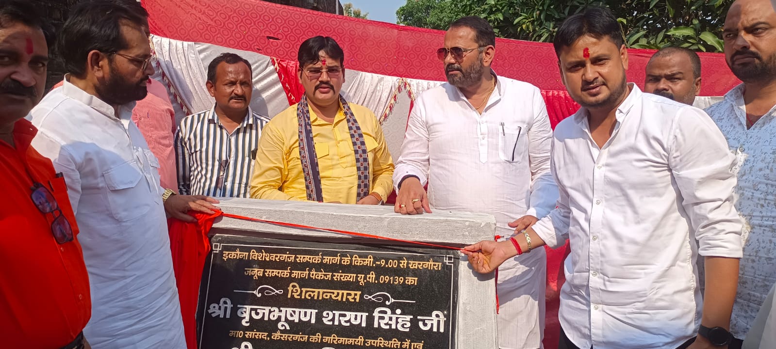 बहराइच (राष्ट्र की परम्परा) पयागपुर को धनुही चौराहे पर विधायक सुभाष त्रिपाठी वा सांसद कैसरगंज के प्रतिनिधि सुनील सिंह ने संयुक्त रूप से प्रधानमंत्री ग्राम सड़क योजना का शिलान्यास कर क्षेत्र के लोगों को सौगात दी।विशेश्वरगंज इकौना को जोड़ने वाली धनुही से खरगौरा जनूब तक की सड़क लोडिंग वा अधिक यातायात के कारण क्षतिग्रस्त हो गई थी।इस सड़क से होकर लोग बहराइच श्रावस्ती गोंडा व बलरामपुर तक की यात्रा करते हैं।सड़क क्षतिग्रस्त होने के कारण 7 किमी की यात्रा लोगों के लिए बेहद कष्टदायक रहती है।श्री त्रिपाठी ने अपने संबोधन में कहा कि उक्त सड़क बनने से सरकाही,पकड़ी,अमकोलवा,खरगौरा,जनूब,मझवा बनकट,भवानीपुर,जोकहा, बूढ़नी भलुहिया समेत संतनगर चौराहा के लोगों को बेहतर आवागमन की सुविधा मिलेगी।उन्होंने बताया कि यह सड़क प्रधानमंत्री ग्राम सड़क योजना के तहत साढ़े पांच करोड़ की लागत से बन रही है जिससे लगभग बीस हजार लोग लाभान्वित होंगे। सभा को सांसद प्रतिनिधि सुनील सिंह ,विधानसभा संयोजक निशंक त्रिपाठी एवं हुजूरपुर ब्लाक प्रमुख अजीत सिंह ने भी संबोधित किया। इस अवसर पर जिला उपाध्यक्ष उमाशंकर तिवारी, मण्डल अध्यक्ष राजकुमार शुक्ल,रामगोपाल शुक्ल, अनिरुद्ध प्रसाद तिवारी, धनलाल पाण्डे,दिहलदास मिश्र,मनोज शुक्ल,प्रमोद शुक्ल,जय प्रकाश शुक्ल,अखिलेश पाण्डे,भानू मिश्र,आनंद शुक्ल,विकास पाण्डे,ओमदत्त मिश्र, रामसमुझ चौधरी,मन्नू सिंह,कपीश सिंह,पृथ्वीराज यादव,राम फेरन पाण्डेय,जय प्रकाश शुक्ल,शीतला मिश्र, साहब दयालपासवान,अजीत शुक्ल,रवि मिश्र,सन्तोष तिवारी,मुकेश सिंह,शनी सिंह,सत्यम सिंह,प्रदीप यादव,सदस्य जिला पंचायत चेतराम,प्रधान रईश,बडेलाल गोस्वामी,विपिन सिंह,राम उजागर गोस्वामी,मनोज सिंह,अरबिन्द पाण्डेय,प्रदीप त्रिपाठी,पवन शुक्ल,प्रधान शिव स्वरुप तिवारी,अगनू कश्यप,प्रधान जमुना प्रसाद राव,सतीश गौतम,सोमनाथ राजभर समेत सैकड़ो लोग उपस्थित रहे।