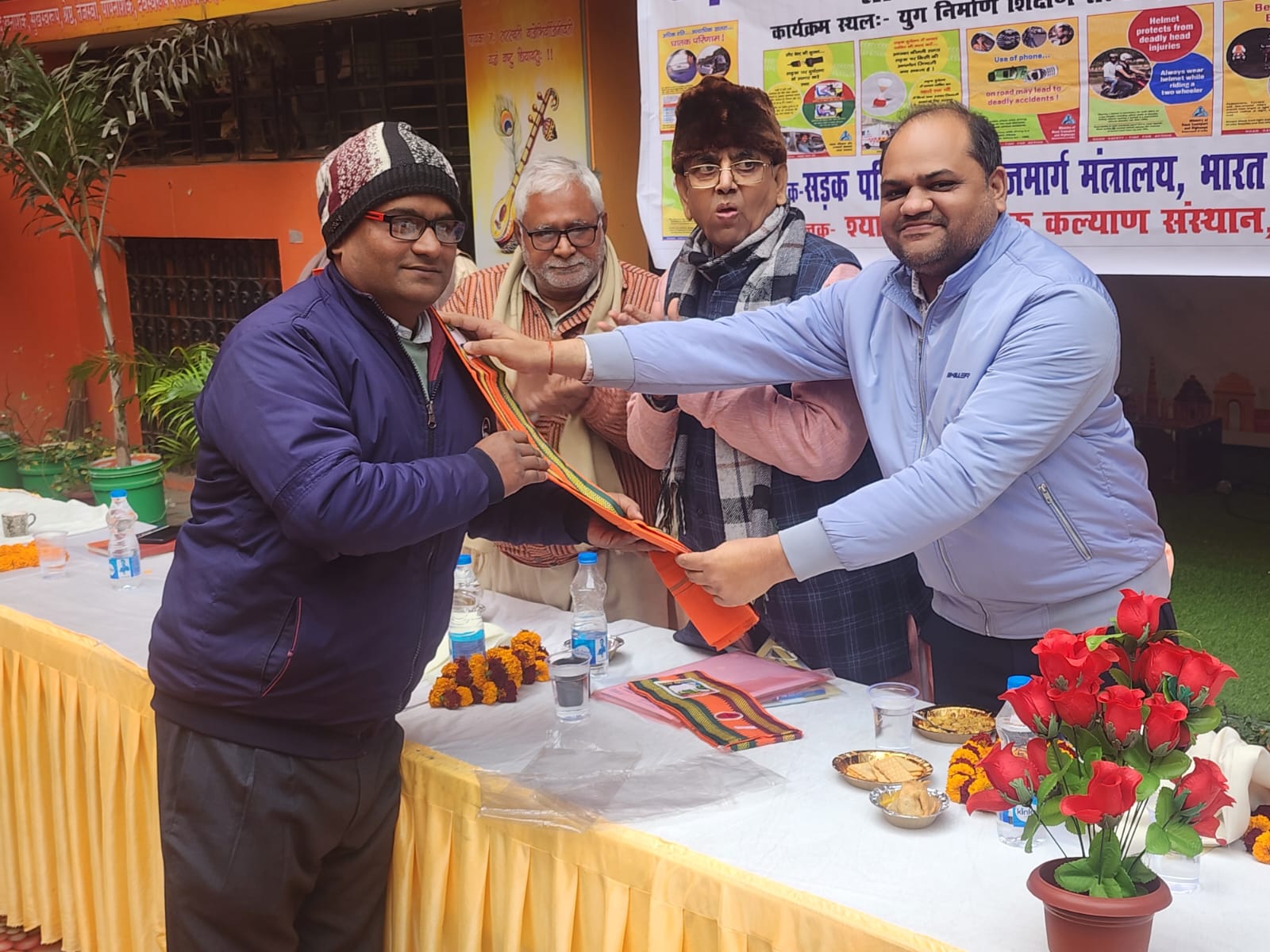 देवरिया(राष्ट्र की परम्परा) सड़क परिवहन एवं राजमार्ग मंत्रालय भारत सरकार के सहयोग से संस्था श्याम कवि लोक कल्याण संस्थान पिंडी देवरिया द्वारा युग निर्माण शिक्षण संस्थान देवरिया में सड़क सुरक्षा जागरूकता सेमिनार का आयोजन किया गया इसमें छात्रों ने भी सड़क सुरक्षा के बारे में बढ़-चढ़कर प्रतिभा किया तथा बच्चों को संस्था द्वारा प्रमाण पत्र व सम्मान चिन्ह देकर सम्मानित किया गया इस मौके पर टी एस आई अमित पांडे द्वारा बताया गया हेलमेट व सीट बेल्ट लगाने से व यातायात के नियमों को पालन करने से सड़क दुर्घटनाओं को 80% की कमी लाई जा सकती है तथा एआरटीओ अनिल तिवारी द्वारा यातायात नियमों को पालन करने की शपथ दिलाई गई इस मौके पर नित्यानंद शर्मा (पूर्व मंत्री तकनीकी शिक्षा) एआरटीओ अनिल तिवारी टी एस आई,अमित पांडे ,प्रधानाचार्य कमलेश सेन ,अनिल त्रिपाठी, हरिशंकर मणि त्रिपाठी, अन्य कॉलेज स्टाफ व संस्था से वीरेंद्र बाजपेई,संजीव श्रीवास्तव आदि लोग उपस्थित रहे