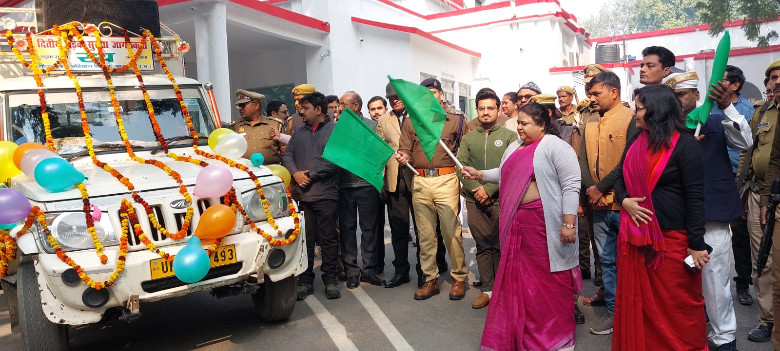 बहराइच (राष्ट्र की परम्परा)। सुरक्षित यात्रा-सुरक्षित जीवन के संकल्प तथा शीत ऋतु में सड़क दुर्घटनाओं व उनसे होने वाली मृत्यु की संख्या में कमी लाये जाने के उद्देश्य के साथ में 15 से 31 दिसम्बर तक आयोजित होने वाले द्वितीय सड़क सुरक्षा पखवाड़ा के शुभारम्भ अवसर पर सदर विधायक अनुपमा जायसवाल व जिलाधिकारी मोनिका रानी ने संयुक्त रूप से हरी झंड़ी दिखाकर कलेक्ट्रेट परिसर से जागरूकता वाहनों को रवाना किया, इस अवसर पर अपर जिलाधिकारी गौरव रंजन श्रीवास्तव, मुख्य राजस्व अधिकारी अवधेश कुमार मिश्र, नगर मजिस्ट्रेट शालिनी प्रभाकर, पुलिस क्षेत्राधिकारी नगर राजीव सिसोदिया, उपायुक्त मनरेगा के.डी. गोस्वामी, अधि.अभि. लो.नि.वि. प्रा.ख. प्रदीप कुमार, डिप्टी कलेक्टर अश्वनी पाण्डेय, सहायक सम्भागीय परिवहन अधिकारी प्रशासन राजीव कुमार व प्रवर्तन के ओ.पी. सिंह सहित अन्य स्टेक होल्डर्स विभागों के अधिकारी व गैर सरकारी संगठनों के पदाधिकारी मौजूद रहे।