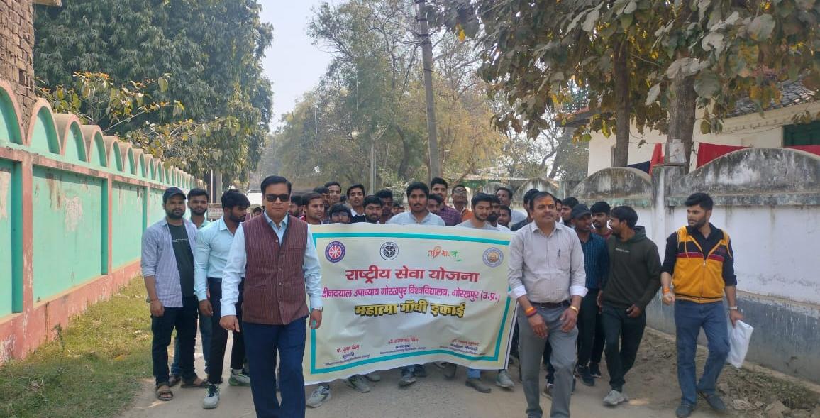 गोरखपुर (राष्ट्र की परम्परा)। दीनदयाल उपाध्याय गोरखपुर विश्वविद्यालय के राष्ट्रीय सेवा योजना द्वारा भौवापार ग्राम में चलाए जा रहे सप्त दिवसीय विशिष्ट शिविर के सातवें दिन रविवार को स्वयंसेवक एवं स्वयंसेविकाओं द्वारा सड़क सुरक्षा पर जन जागरूकता अभियान चलाया गया।