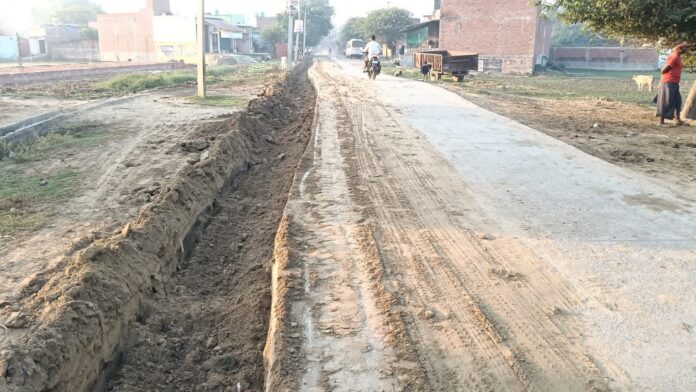 शाहजहांपुर (राष्ट्र की परम्परा)। जैतीपुर गढ़िया रंगीन में चल रहे रोड चौड़ीकरण के काम ने सुविधा की बजाय खतरे को आमंत्रित कर दिया है। ठेकेदार और विभाग की लापरवाही के कारण सड़क के किनारे खोदी गई खाई में न पत्थर या गिट्टी भरी गई है और न ही कोई सुरक्षा बैरिकेडिंग की गई है।