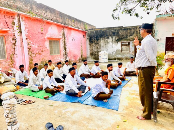 शाहजहांपुर (राष्ट्र की परम्परा)। जैतीपुर विजयदशमी के पावन पर्व पर राष्ट्रीय स्वयंसेवक संघ की जैतीपुर इकाई द्वारा सौ वां स्थापना दिवस धूमधाम से मनाया गया। श्री राम जानकी महाराज मंदिर पर कार्यक्रम का आयोजन कर मुख्य वक्ता खंड चालक ओमपाल सिंह स्वयंसेवकों को संबोधित किया।कहा हम संघ शताब्दी वर्ष मना रहे है।यह हमारे लिये गर्व का क्षण है। 1925 में विजयदशमी के दिन ही संघ की स्थापना हुई थी।संघ पंच परिवर्तन के माध्यम से समाज को जागृत व जागरूक कर रहा है। बताया आरएसएस बीते 100 वर्षों से लगातार देश हित में कार्य करते चली आ रही है। देश में कोई भी आपदा आने पर स्वयंसेवको नें बगैर भेदभाव किया अपना योगदान दिया हैं।कार्यक्रम के अंत में शस्त्र पूजन किया गया।इस दौरान मचकेंद्र सिंह, मदनपाल सिंह,अमित कुमार अंकित सिंह,दीपेश सिंह,मुन्ना कुशवाहा,पवन गुप्ता,गोलू आदि स्वयंसेवक मौजूद रहे l