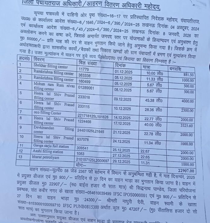 संत कबीर नगर (राष्ट्र की परम्परा)। जिले में कुछ सरकारी विभागों द्वारा नियमों की अनदेखी कर अपने करीबी लोगों को फायदा पहुंचाने के मामले लगातार सामने आ रहे हैं। जिला पंचायत राज विभाग भी इसी तरह के एक प्रकरण को लेकर चर्चा में है। विभाग द्वारा एक चार पहिया वाहन यूपी 58 जेड 2367 को लगभग पचास हजार रुपये प्रतिमाह की दर से उपयोग में लिया जा रहा है, जबकि उस वाहन का विभाग से कोई अधिकृत अनुबंध नहीं बताया जा रहा है।