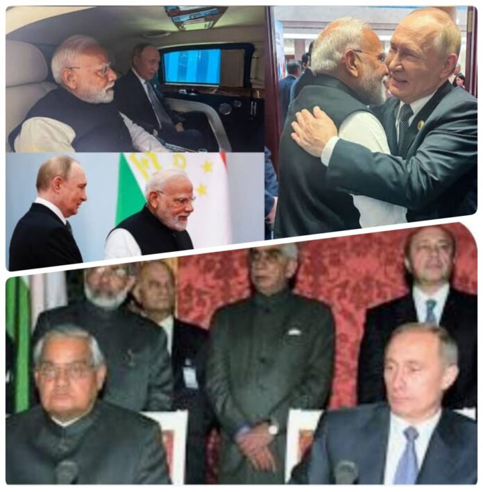 नई दिल्ली (राष्ट्र की परम्परा डेस्क)व्लादिमीर पुतिन की द्विदिवसीय राजकीय भारत-यात्रा और 23वें भारत-रूस वार्षिक शिखर सम्मेलन का आगाज़ एक ऐसे दौर में हो रहा है, जब भारत-रूस के रिश्तों में नई दिशा खोजने का समय है। 2001 में — जब नरेंद्र मोदी तत्कालीन गुजरात के मुख्यमंत्री थे — पहली बार मास्को की यात्रा के दौरान स्थापित हुई यह मित्रता आज लगभग 25 साल पूरे करती है। वर्तमान दौर में दोनों देशों के बीच ‘विशेष एवं विशेषाधिकार प्राप्त रणनीतिक साझेदारी’ को फिर से मजबूती देने का अवसर बन गया है।