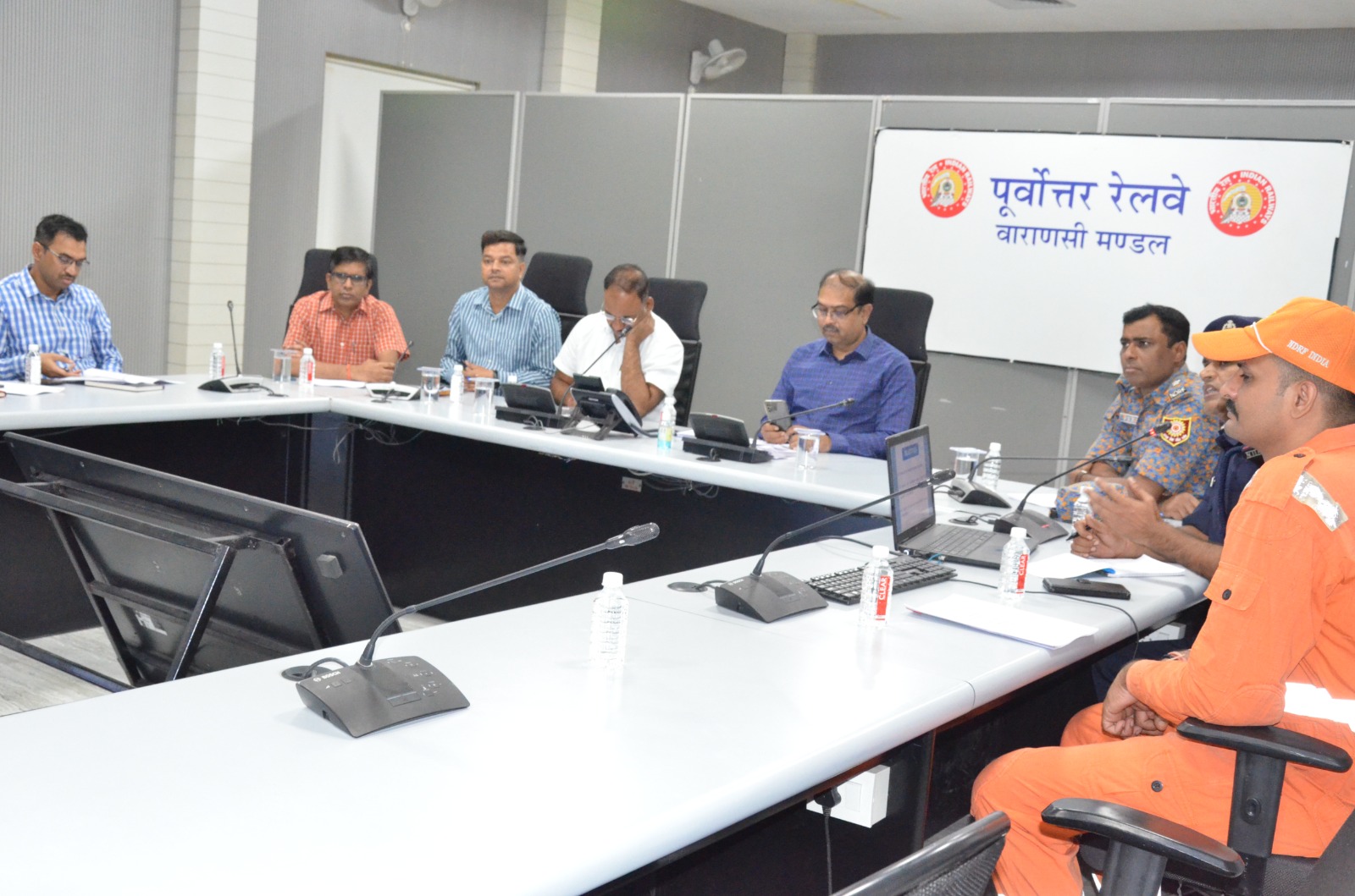 मंडल कार्यालय के भारतेन्दु सभा कक्ष में 03 नवम्बर 23, 11 वीं वाहिनी राष्ट्रीय आपदा मोचन बल ( NDRF) वाराणसी के साथ संरक्षा बैठक का आयोजन किया गया । इस बैठक में वाराणसी मंडल पर मॉक एक्सरसाइज करके प्रतिक्रिया तंत्र की जांच करने और प्रतिकूल स्थिति में बचाव कार्यवाही को परखने तथा हित धारकों के बीच समन्वय बनाने एवं उपचारात्मक उपाय करके संसाधनों की दक्षता की जाँच करने के उद्देश्य से मऊ कोचिंग डिपो यार्ड में NDRF के साथ 6 नवम्बर 2023, सोमवार को फुल स्केल माकड्रिल करने की योजना बनाई गई है।