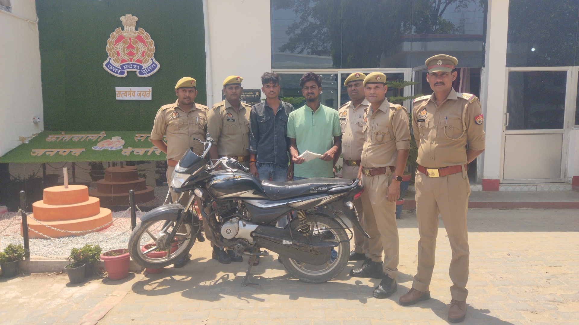 सलेमपुर/देवरिया(राष्ट्र की परम्परा) सलेमपुर पुलिस ने चोरी की मोटर साइकिल और देशी असलहे के साथ दो व्यक्तियों को किया गिरफ्तार । देर रात सलेमपुर के बीराजमार डाले के पास संदिग्ध व्यक्ति वस्तु की जांच के दौरान मुखबिर की सूचना पर एक पलेटीना मोटर साइकिल पर दो व्यक्तियों को आते देखा गया और संदिग्ध लगने पर पुलिस द्वारा घेरा बंदी की गई जिसपर दोनो व्यक्तियों द्वारा गाड़ी फेक कर भागने की कोशिश की गई। पुलिस द्वारा इनको दौड़ा कर पकड़ लिया गया । पुलिस द्वारा व्यक्तियों की जांच पड़ताल किया जाने लगा। पूछ ताछ में इनके द्वारा अपना नाम रामशरीखा पुत्र शारदा प्रसाद निवासी ग्राम कसीली थाना मईल जिला देवरिया ,तथा सूरज गुप्ता पुत्र दीनानाथ निवासी ग्राम कसीली थाना मईल जिला देवरिया बताया गया जब इनकी गाड़ी के कागजात की मांग की गई तो इनके द्वारा टाल मटोल किया जाने लगा ।पुलिस ने जब कड़ाई से पूछ ताछ किया तो इनके द्वारा गाड़ी पर लगा नंबर प्लेट गलत और गाड़ी चोरी की होना बताया गया साथ ही जब इनकी तलाशी ली गई तो इनके पास से एक देशी तमंचा एक कारतूस भी बरामद हुआ । इनके खिलाफ सलेमपुर कोतवाली प्रभारी ने विधिपूर्वक धाराओं में अभियोग पंजीकृत कर जेल भेज ने की कार्यवाही की जा रही है । गिरफ्तारी करने वाली टीम में उप निरक्षक निरंजल लाल , का o गुलशन सोनकर,हरी प्रसाद यादव,मंजीत खरवार, आदि लोग रहे ।