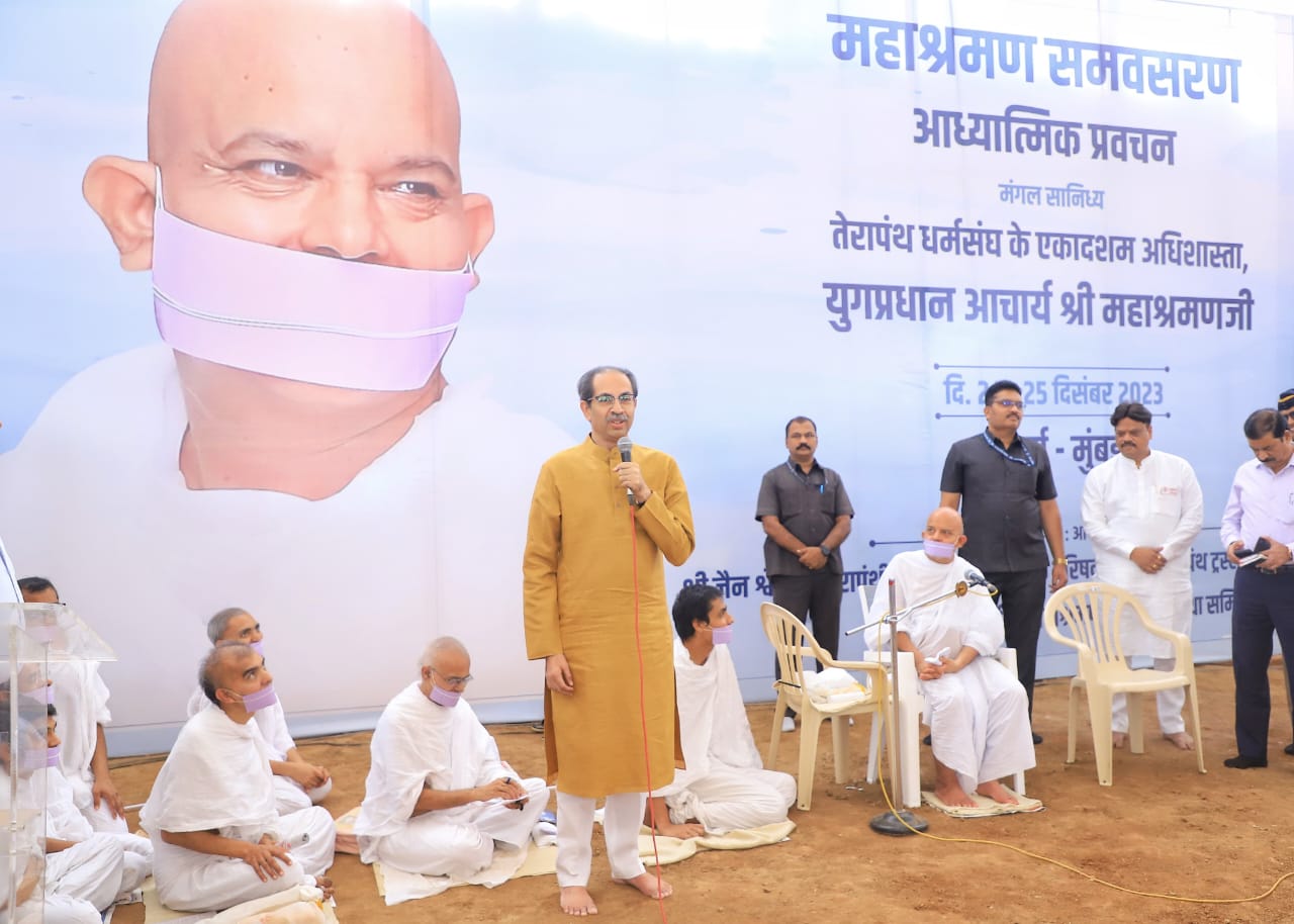 तेरापंथ जैन संघ के आचार्य महाश्रमण का आशीष लिया उद्धव ठाकरे ने