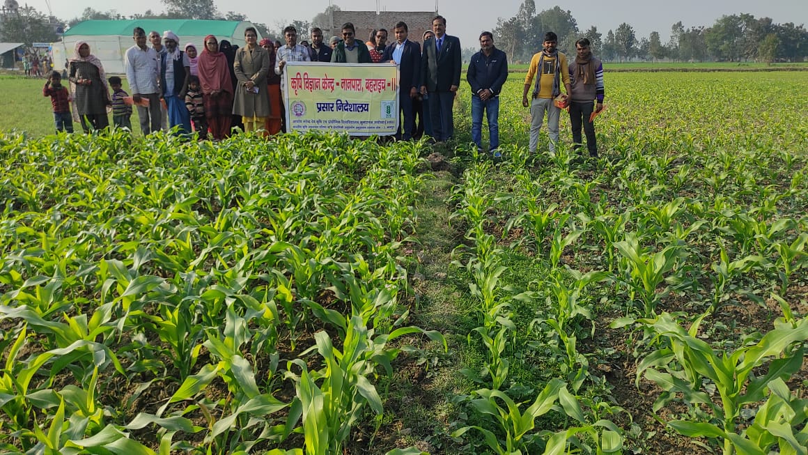 बहराइच (राष्ट्र की परम्परा)।आचार्य नरेंद्र देव कृषि एवं प्रौद्योगिकी विश्वविद्यालय अयोध्या के अंतर्गत संचालित कृषि विज्ञान केंन्द्र नानपारा की वैज्ञानिक टीम ने रबी मक्का के प्रक्षेत्रों पर कृषकों के यहाँ जा कर लगाई गई रबी मक्का का अवलोकन किया।