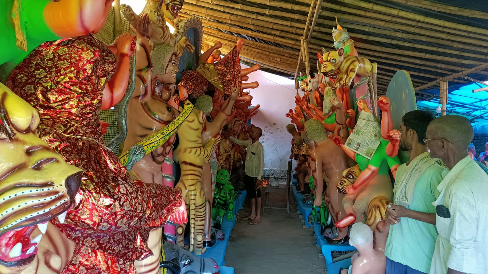 महराजगंज (राष्ट्र की परम्परा)। नवरात्र व दशहरे का पर्व नजदीक में आने से पहले ही दुर्गा प्रतिमाओं को अंतिम रूप देने में मूर्तिकार जुट गये हैं ।इसके साथ ही जिले के नगर पंचायत सिसवा ,निचलौल , फरेन्दा ,पनियरा , परतावल, नौतनवा, घुघली सहित कोल्हुई ,ठूठीबारी, सिन्दुरिया ,बृजमनगंज, बहदुरी ,चौक बाजार ,मिठौरा ,भिटौली ,शिकारपुर,आदि जगहों पर ,दुर्गा पूजा समितियां भी पांडालों को तैयार करने में लग गयी हैं। आश्विन मास के पितृपक्ष के समाप्त होने के साथ ही शुक्ल पक्ष में नवरात्र की प्रथम तिथि से ही दुर्गा पूजा समारोह के लिये तैयारियां तेज हो जाती हैं। जिसे लेकर समितियों के सदस्यों द्वारा पांडाल को सजाने एवं दुर्गा प्रतिमा को स्थापित करने में जुट गये हैं। वहीं मूर्तिकार भी दुर्गा प्रतिमा सहित अन्य देवी देवताओं की मूर्तियों को अंतिम रूप देने में लगे हुए हैं। जिससे नवरात्रि के प्रथम तिथि को पूर्ण रूप से तैयार मूर्तियों को समय से तैयारी करने मे लगे हुए है |