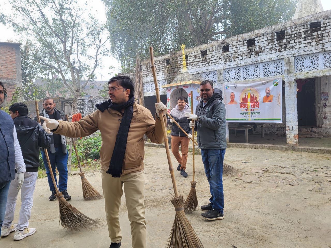 राम जानकी मन्दिर में एसडीएम के संग अधिशाषी अधिकारी नगर पंचायत मोहम्मद यूसुफ अध्यक्ष नगर पंचायत शिवम द्विवेदी तहसील के समस्त कर्मचारी झाड़ू लगाकर साफ-सफाई करने का संदेश दिया,उप जिलाधिकारी ने कहा की लोग अपने आसपास विशेष कर सार्वजनिक स्थानों का विशेष रूप से साफ-सफाई में ध्यान दें एवं स्वच्छ भारत मिशन को कामयाब बनाने उप जिलाधिकारी ने बताया कि 16 तारीख से सभी मंदिरों को रंग रोशन किया जाएगा उसमें भजन कीर्तन आदि कार्यक्रम का आयोजन किया जाएगा साथ ही साथ 24 जनवरी को दीपोत्सव की तैयारी भी की जा रही है। इस मौके पर नगर पंचायत कैसरगंज के समस्त कर्मचारी एवं तहसील कैसरगंज के समस्त कर्मचारी मौजूद रहे।