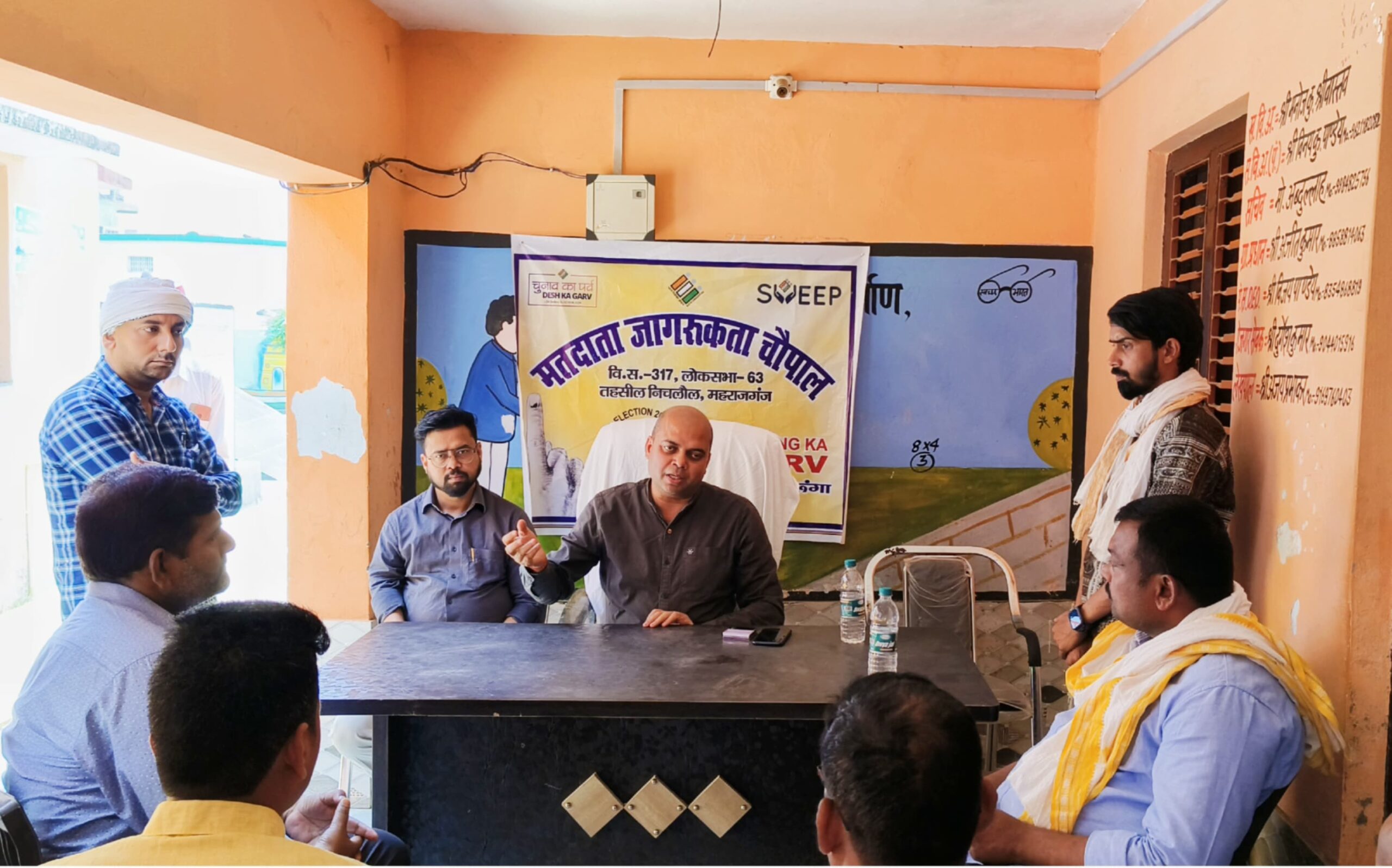 महराजगंज (राष्ट्र की परम्परा)।आगामी लोकसभा निर्वाचन के मद्देनजर चुनाव आयोग के निर्देश पर शत- प्रतिशत मतदान करने को लेकर आम नागरिकों को जागरूक किया जा रहा है। इसी क्रम में सोमवार को निचलौल एसडीएम मुकेश कुमार सिंह ने ठूठीबारी स्थित ग्राम सचिवालय में ग्रामीणों के साथ मतदाता जागरूकता चौपाल लगाकर लोगों से शत-प्रतिशत मतदान करने के लिए जागरूक किया। साथ ही एक जून को मतदान करने की अपील भी किया।