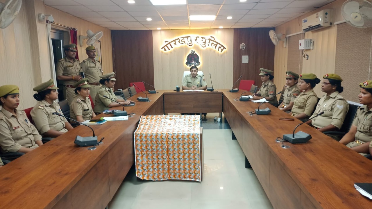 वरिष्ठ पुलिस अधीक्षक गोरखपुर द्वारा आगामी त्यौहारो के दृष्टिगत थानों पर नियुक्त महिला पुलिस कर्मियों के साथ की गयी गोष्ठी