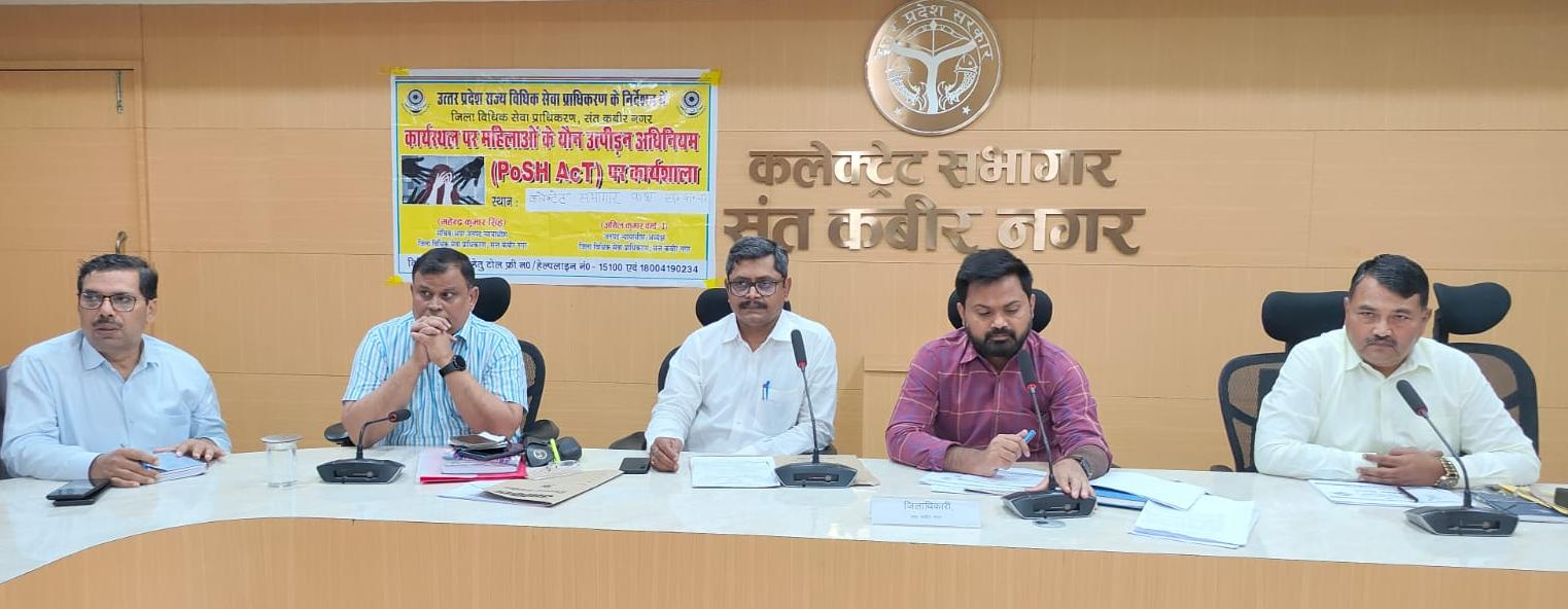 संत कबीर नगर (राष्ट्र की परम्परा)। जिलाधिकारी महेंद्र सिंह तंवर व अपर जिला जज/सचिव, जिला विधिक सेवा प्राधिकरण महेंद्र कुमार सिंह की संयुक्त अध्यक्षता में कार्यस्थल पर लैंगिक उत्पीड़न के सम्बन्ध में कलेक्ट्रेट सभागार में सेमीनार का आयोजन किया गया।