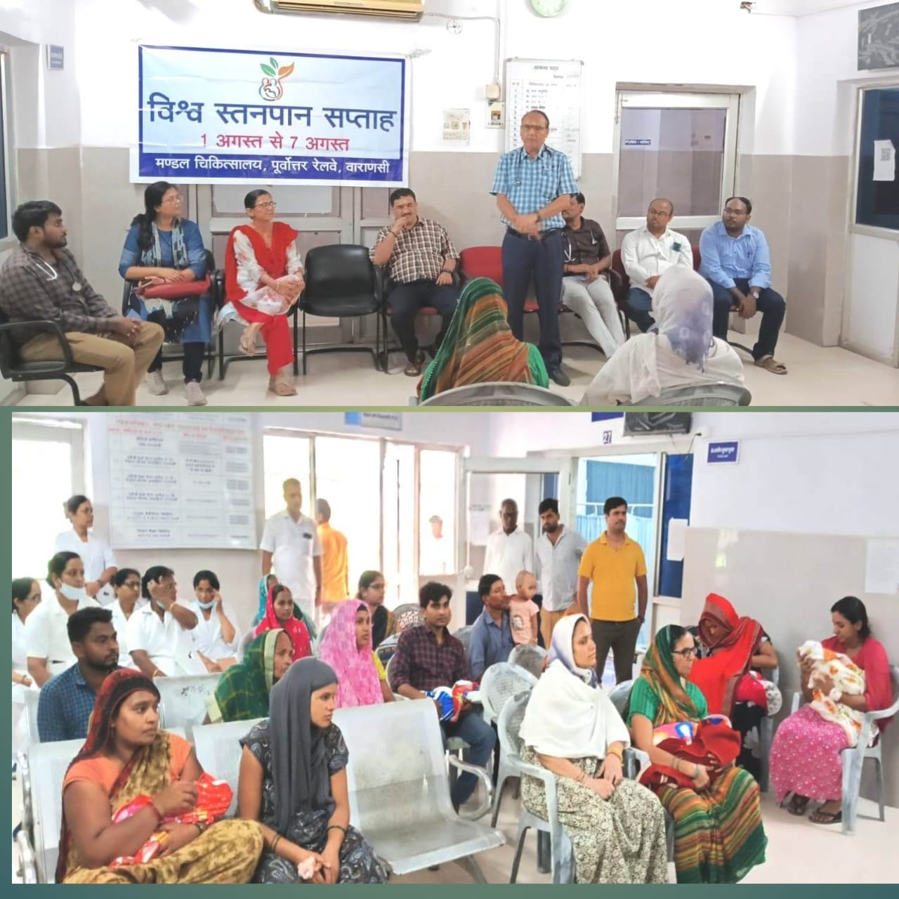 पूर्वोत्तर रेलवे के मंडल रेल प्रबंधक विनीत कुमार श्रीवास्तव के निर्देशन एवं मुख्य चिकित्सा अधीक्षक डा आर.जे चौधुरी के कुशल नेतृत्व में, मंडल चिकित्सालय वाराणसी में विश्व स्तनपान सप्ताह 1 अगस्त से 7 अगस्त तक श्रृंखलाबद्ध जागरूकता कार्यक्रमों के साथ मनाया जा रहा है ।