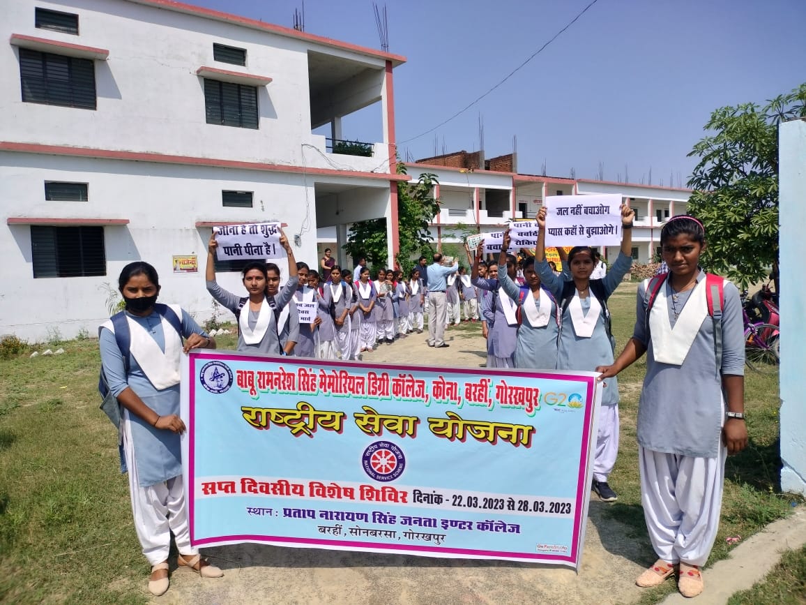 झंगहा/गोरखपुर (राष्ट्र की परम्परा) बाबू रामनरेश सिंह मेमोरियल डिग्री कॉलेज कोना बरही में बुधवार को राष्ट्रीय सेवा योजना का सात दिवसीय विशेष शिविर का उद्घाटन, महाविद्यालय के प्राचार्य डॉ महेश पति त्रिपाठी ने किया। स्वयंसेवकों द्वारा विश्व जल दिवस के अवसर पर रैली भी निकाली गई, लोगों को पानी बचाने के लिए एवं पानी से होने वाली बीमारियों के प्रति जागरूक किया गया। सत्र की शुरुआत मां सरस्वती के चित्र पर माल्यार्पण कर मुख्य अतिथि द्वारा किया गया। कार्यक्रम को संबोधित करते हुए मुख्य अतिथि डॉ. महेश पति त्रिपाठी ने कहा कि राष्ट्रीय सेवा योजना युवाओं के अंदर देश प्रेम एवं समाज सेवा की भावना जागृत करती है। प्रशिक्षण लेकर युवा देश और समाज के हित के लिए कार्य करता है। विश्व जल दिवस के अवसर पर उन्होंने कहा कि जीवन को बचाने के लिए पानी को बचाना अति आवश्यक है। विशिष्ट अतिथि डॉ. बलविंदर प्रजापति ने कहा कि पानी जीवन का एक अभिन्न अंग है, इसलिए सभी की जिम्मेदारी है कि पानी को बचाए और इसे स्वच्छ रखें। शिविर में पेयजल एवं स्वच्छता के बारे में स्वयं सेवकों को जागृत किया गया तथा विभिन्न प्रकार के किट के माध्यम से शुद्ध पेयजल के लिए प्रशिक्षित किया गया। कार्यक्रम में उपस्थित समस्त अतिथियों के प्रति कार्यक्रम अधिकारी डॉ श्रवण कुमार ने आभार व्यक्त किया। शिविर में प्रशिक्षक योगेंद्र मौर्य ने जल प्रबंधन एवं पानी से होने वाली बीमारियां के बारे में स्वयंसेवकों को अवगत कराया। इस अवसर पर राजेश्वर सिंह, अनिल शुक्ला, परशुराम, रीना सिंह, मनोज कुमार आदि लोग उपस्थित रहे।