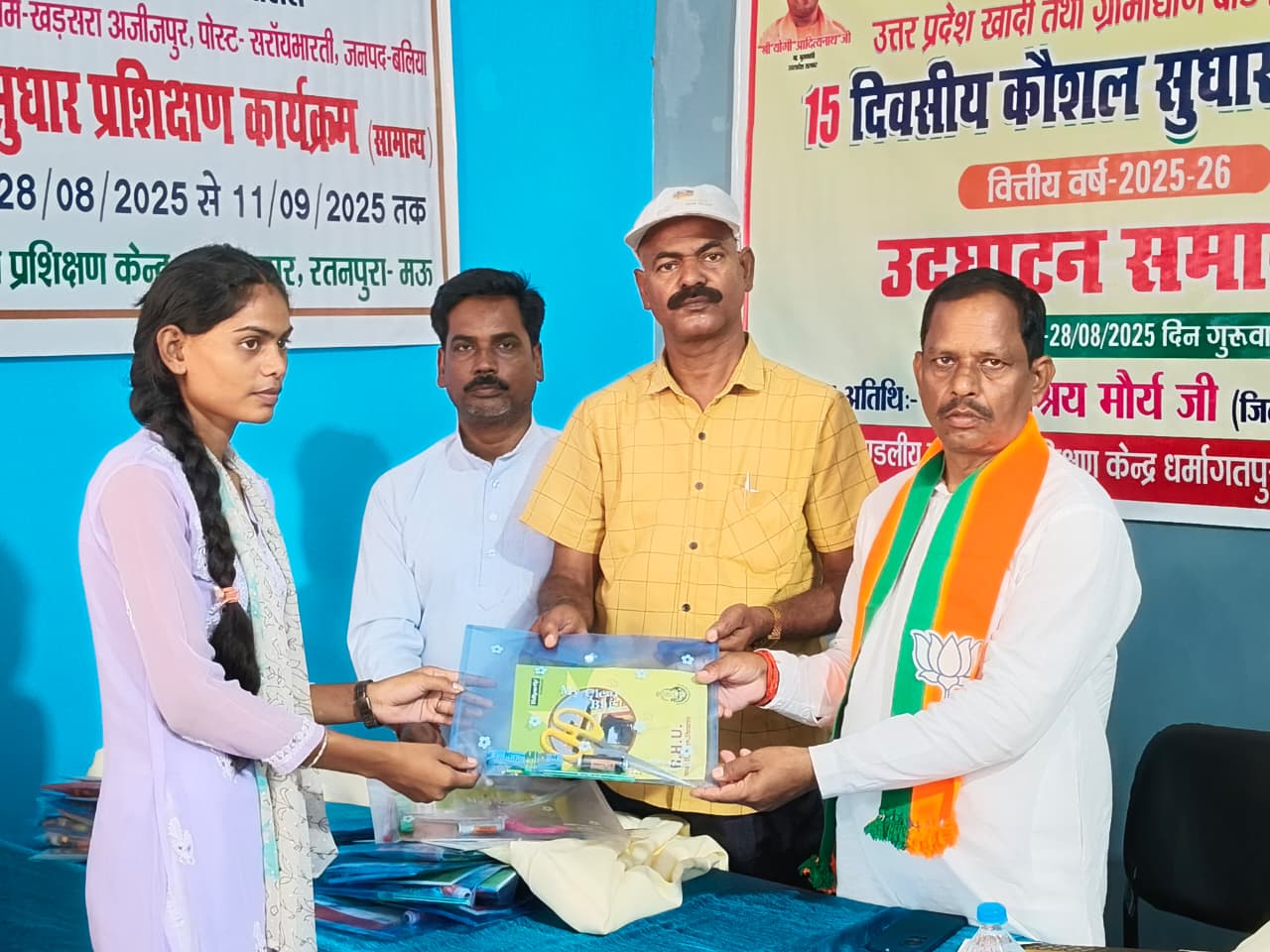 मऊ (राष्ट्र की परम्परा)। मंडलीय ग्रामोद्योग प्रशिक्षण केंद्र धर्मागतपुर के तत्वावधान में आयोजित 15 दिवसीय प्रशिक्षण शिविर का उद्घाटन गुरुवार के दिन भारतीय जनता पार्टी के जिलाध्यक्ष रामाश्रय मौर्य ने फीता काटकर किया। कार्यक्रम की अध्यक्षता मंडलीय ग्रामोद्योग प्रशिक्षण केंद्र के प्राचार्य अभय कुमार द्विवेदी तथा संचालन बब्बन प्रसाद ने किया।