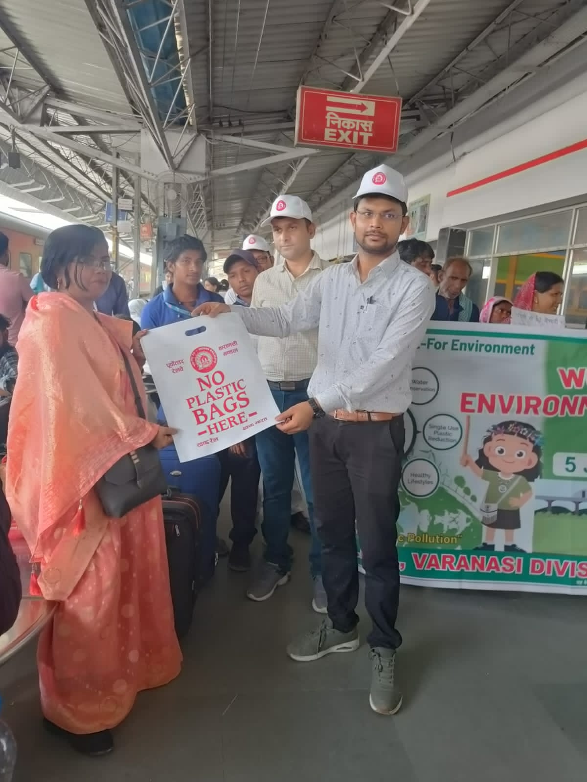 इसके अतिरिक्त जीरो प्लास्टिक कन्जम्शन के अंतर्गत मऊ जं. स्टेशन के पैदल उपरिगामी पुलों, प्लेटफार्मों एवं गुजरने वाली गाड़ियों में यात्रियों को प्लास्टिक के उपयोग से होने वाले दुष्प्रभावों की जानकरी देते हुए उसका प्रयोग न करने की अपील की गयी और इसके लिए यात्रियों में प्लास्टिक के थैले के स्थान पर कपड़े के थैले के प्रति जागरूक करने हेतु कपड़े के थैलों का निःशुल्क वितरण किया गया I