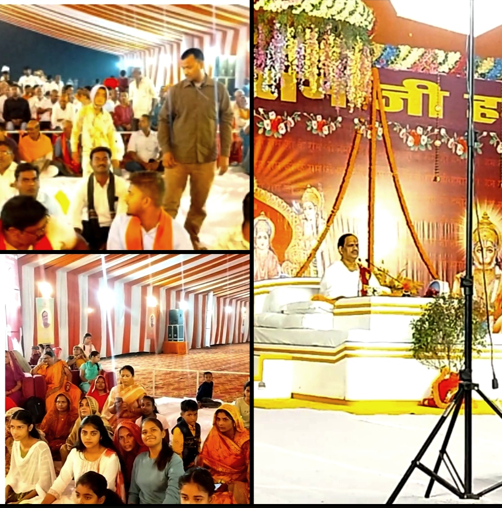 बरहज तहसील क्षेत्र स्थित बाबा महेंद्रा नाथ की पावन धरा पर गुरुवार देर शाम से नव दिवसीय प्रभु श्रीराम कथा आरम्भ हुआ।बताते चले कि बाबा महेंद्रा नाथ की पावन भूमि पर गुरुवार देर शाम बाबा महेंद्रा नाथ सेवा समिति के भक्त चंदन गोस्वामी द्वारा 2 नवम्बर गुरुवार से नव दिवसीय श्रीराम कथा का भव्य आयोजन किया गया।भगवान श्रीराम कथा का शुभारंभ प्रेममूर्ति प्रेमभूषण महाराज के द्वारा किया गया, कथा का श्रवण करने सैकड़ों भक्तगण उपस्थित रहे।इस दौरान प्रेममूर्ति प्रेमभूषण महाराज द्वारा श्रीराम कथा सुन्दर वर्णन किया गया जिसे सुनकर भक्तगण भाव विभोर हो गए। इस अवसर पर प्रेममूर्ति प्रेमभूषण महाराज ने कहा कि श्रीराम कथा श्रवण करने से मानव के सारे कष्ट दूर हो जाते हैं, अतः मोह माया का त्याग कर सभी भक्तों को भगवान में लीन हो जाना चाहिए,क्योकि इस भौतिक युग मे भक्त अपने भगवान से दूर होता जा रहा है। कथा का रसपान करने से मानव शरीर से सारे विकार नष्ट हो जाते हैं। इस अवसर पर भारी संख्या में भक्तगण उपस्थित होकर भगवान के मनमोहक कथा का रसपान किये।जानकारी के अनुसार प्रमुख कथा वाचक प्रेममूर्ति प्रेमभूषण महाराज का निवास बाबू बिजेश्वरी सिंह के रामायण निवास पर हुआ। प्रेम भूषण महाराज के आगमन पर बाबू बिजेश्वरी सिंह , अनन्त पीठ आश्रम के पीठाधीश्वर आंजनेय दास, सन्तोष दीक्षित, पंडित विनय मिश्रा, मनमोहन मिश्रा, सत्यम मिश्रा, रमेश यादव व अनमोल मिश्रा सहित अन्य गणमान्य लोगों द्वारा ढोल नगाड़ों व फूल माला, शंख ध्वनि के साथ भव्य स्वागत किया गया। कार्यक्रम के दौरान कथा स्थल पर पुलिस अधीक्षक संकल्प शर्मा के निर्देश पर थाना प्रभारी नवीन चौधरी, उपनिरीक्षक रंजीत कुमार सिंह, उपनिरीक्षक चंद्रशेखर सिंह,उपनिरीक्षक रविन्द्र यादव,हेड कॉन्स्टेबल अवधेश चौधरी, महिला कांस्टेबल कविता, गायत्री मिश्रा, रागनी मौर्या, सहित भारी पुलिस बल मौजूद रहे।