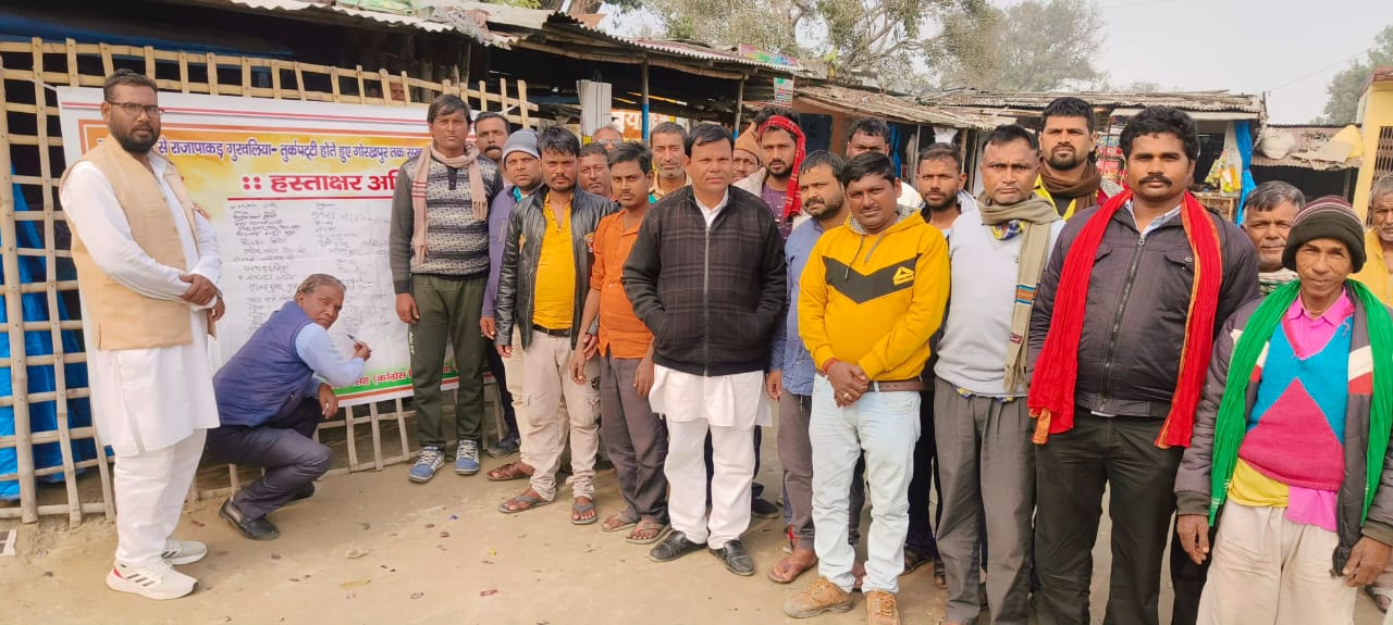 रविवार को बरवाराजापाकड़ बहुरिया टोला बाजार में तमकुही रोड से तुर्कपट्टी होते गोरखपुर तक रोडवेज बस चलाने की मांग को लेकर हस्ताक्षर अभियान चलाया गया।