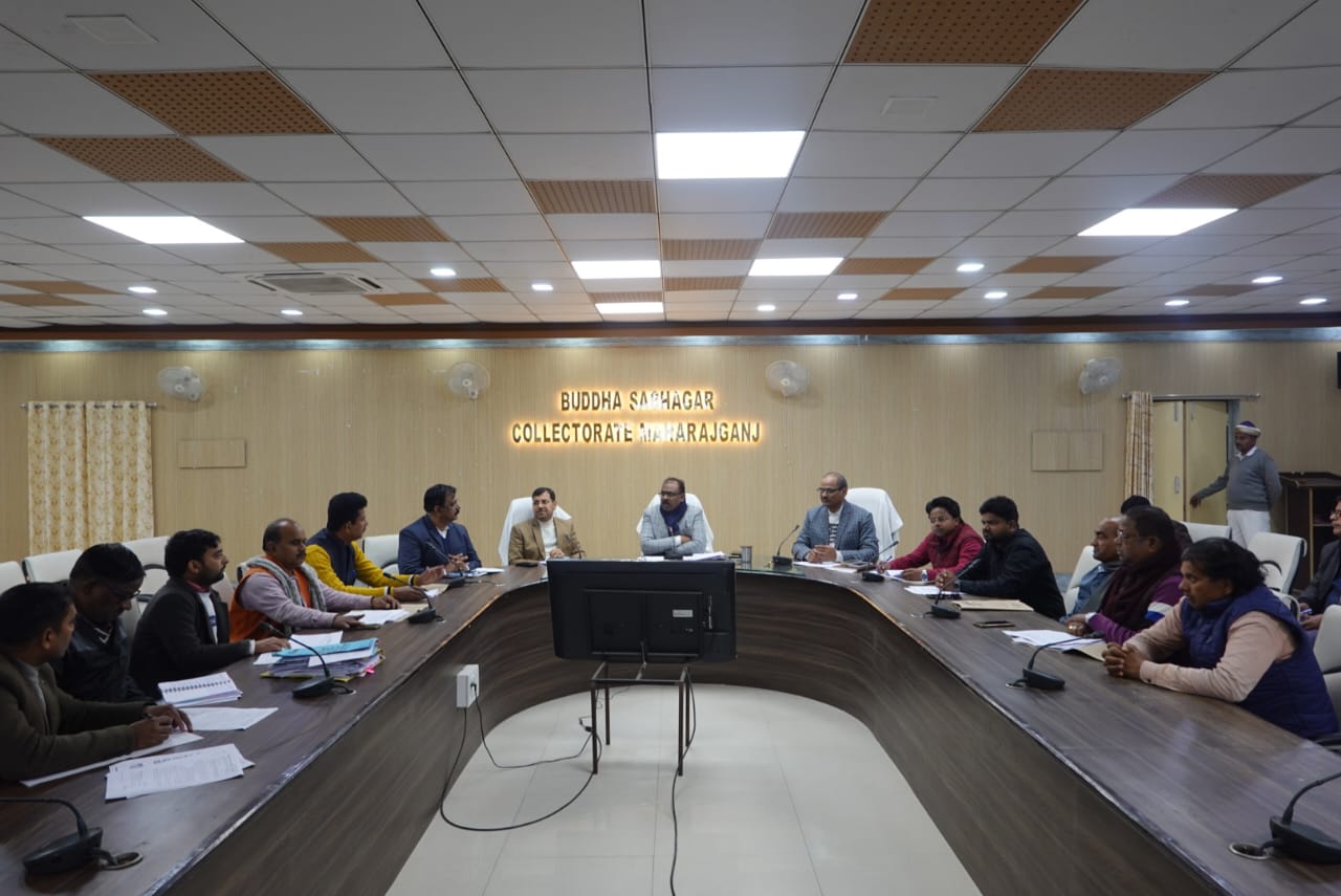 महराजगंज (राष्ट्र की परम्परा)। जिलाधिकारी सन्तोष कुमार शर्मा की अध्यक्षता में कलेक्ट्रेट सभागार में एसआईआर (विशेष गहन पुनरीक्षण) मतदाता पुनरीक्षण कार्यक्रम के अंतर्गत राष्ट्रीय एवं राज्य स्तरीय मान्यता प्राप्त राजनीतिक दलों के प्रतिनिधियों के साथ बैठक आयोजित की गई। बैठक का मुख्य उद्देश्य मतदाता सूची में शत-प्रतिशत नामांकन सुनिश्चित करते हुए निर्वाचक नामावलियों की शुद्धता, सटीकता और गुणवत्ता में सुधार करना रहा।